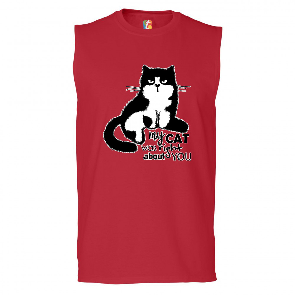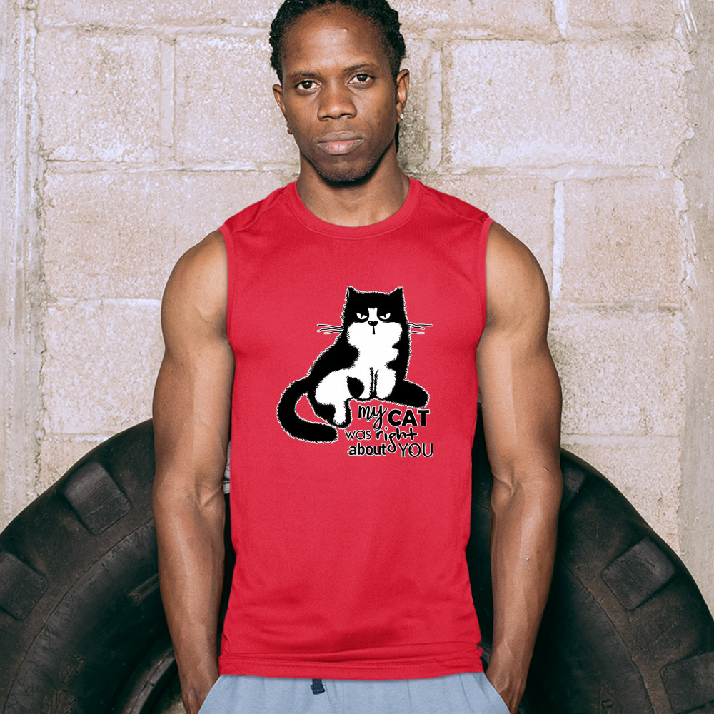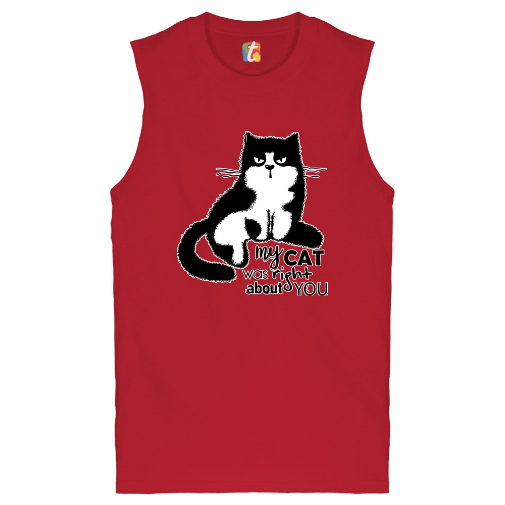 MY CAT WAS RIGHT ABOUT YOU muscle shirt cat lover funny kitty kitten men's red