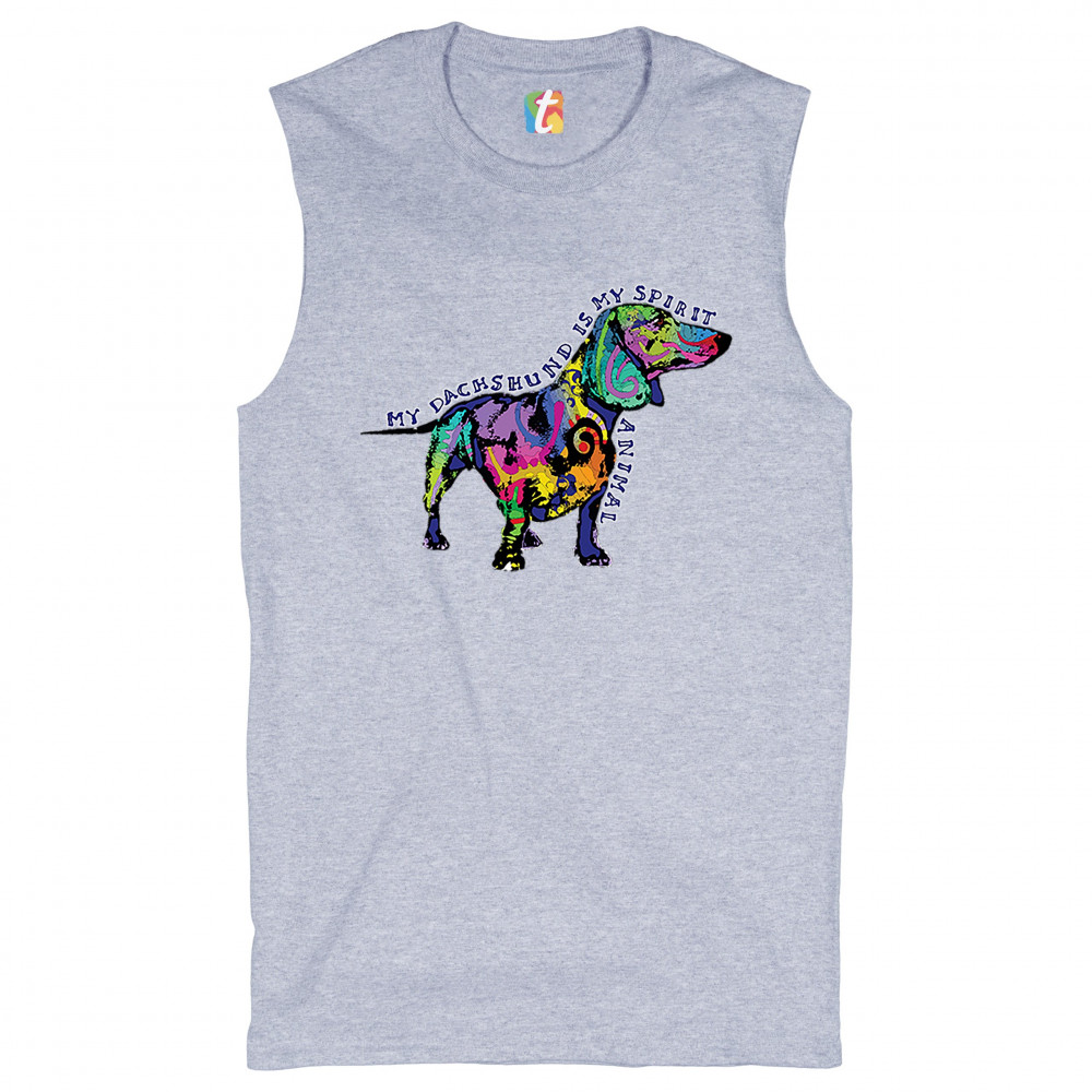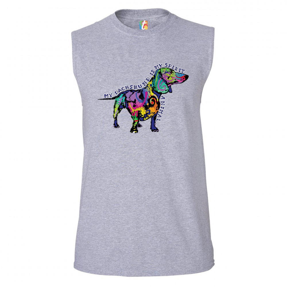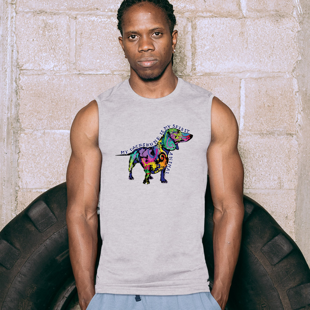 MY DACHSHUND IS MY SPIRIT ANIMAL muscle shirt cute puppy dog lover men's gray