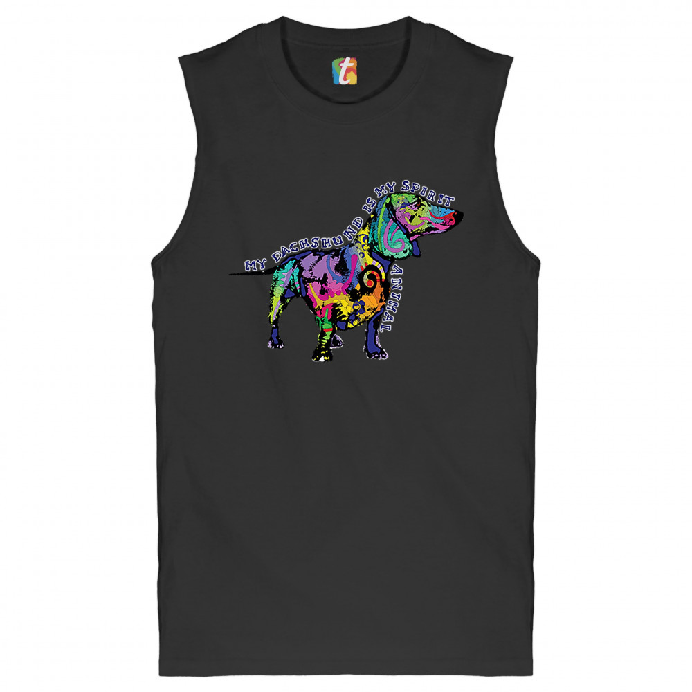 MY DACHSHUND IS MY SPIRIT ANIMAL muscle shirt cute puppy dog lover men's black