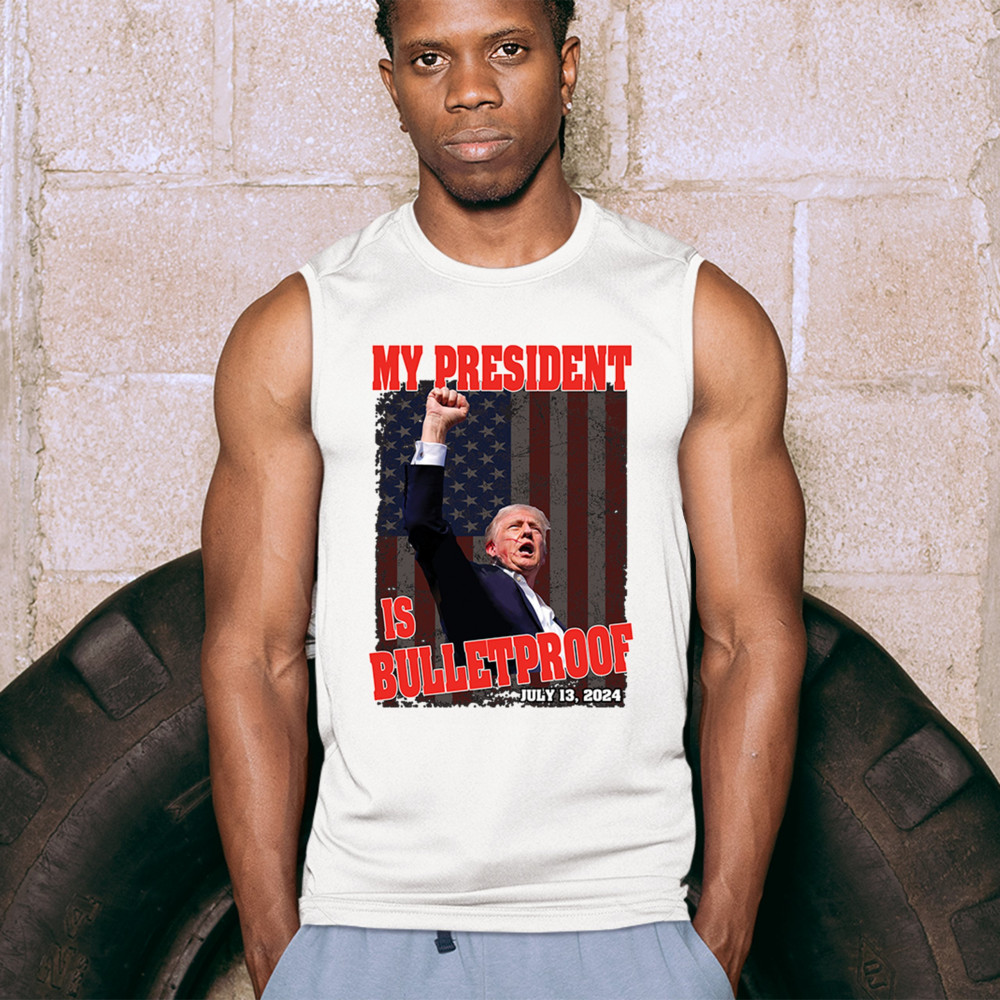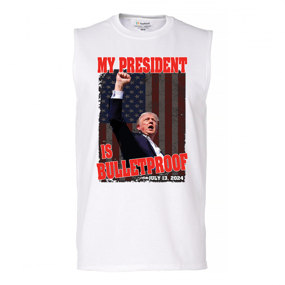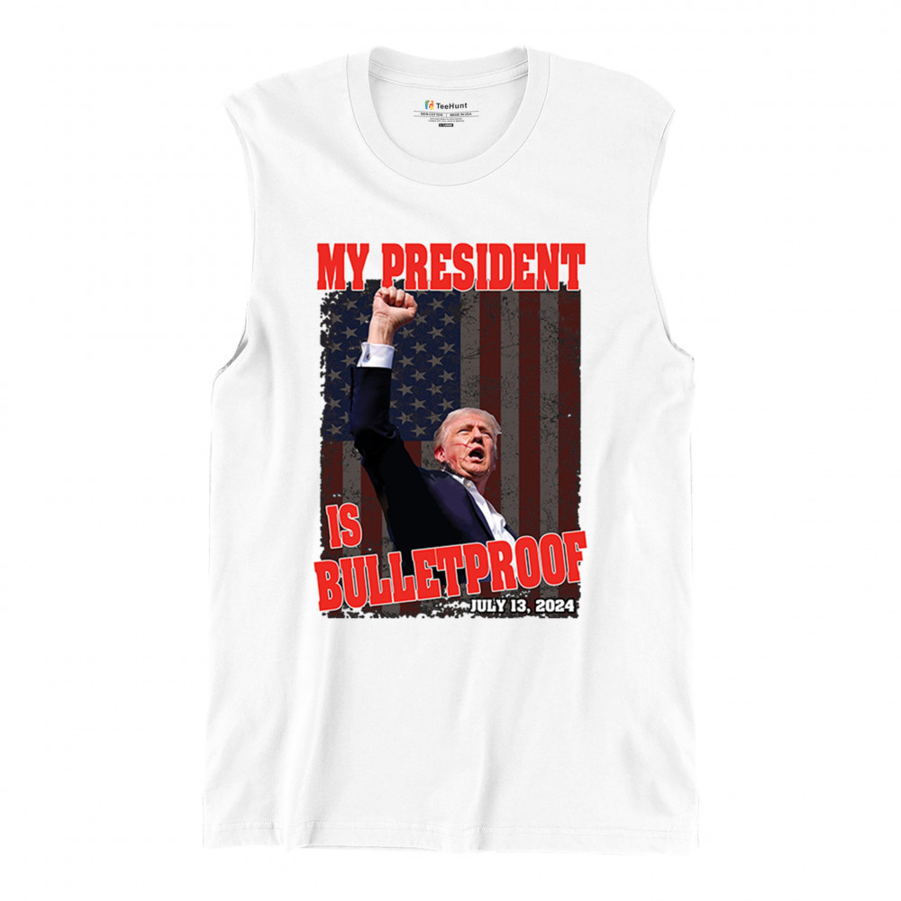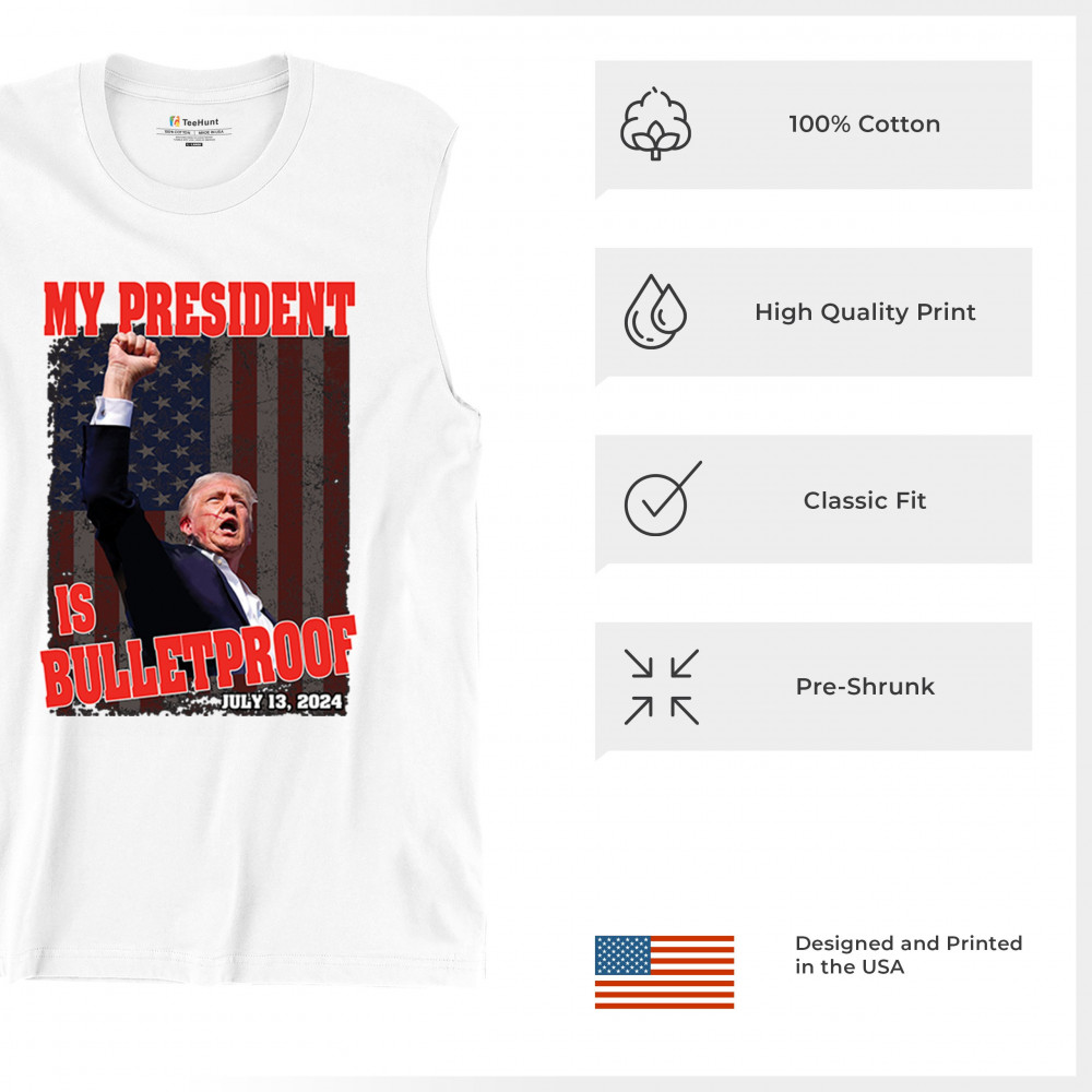 Support Trump with our "My President is Bulletproof" design, perfect for rallies and everyday wear. Show your patriotic pride and conservative values.