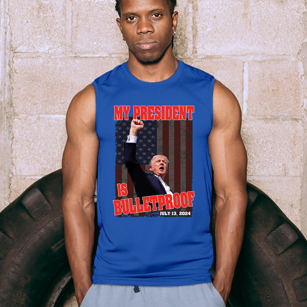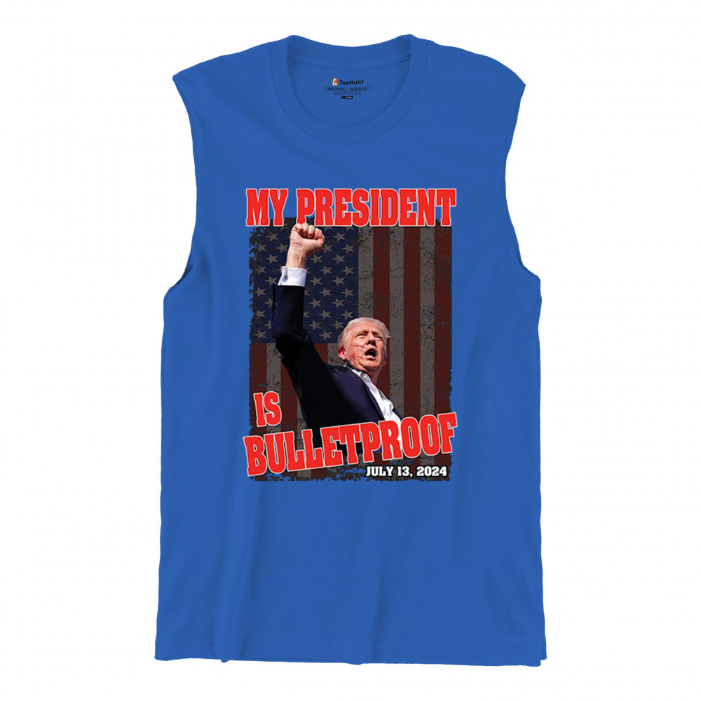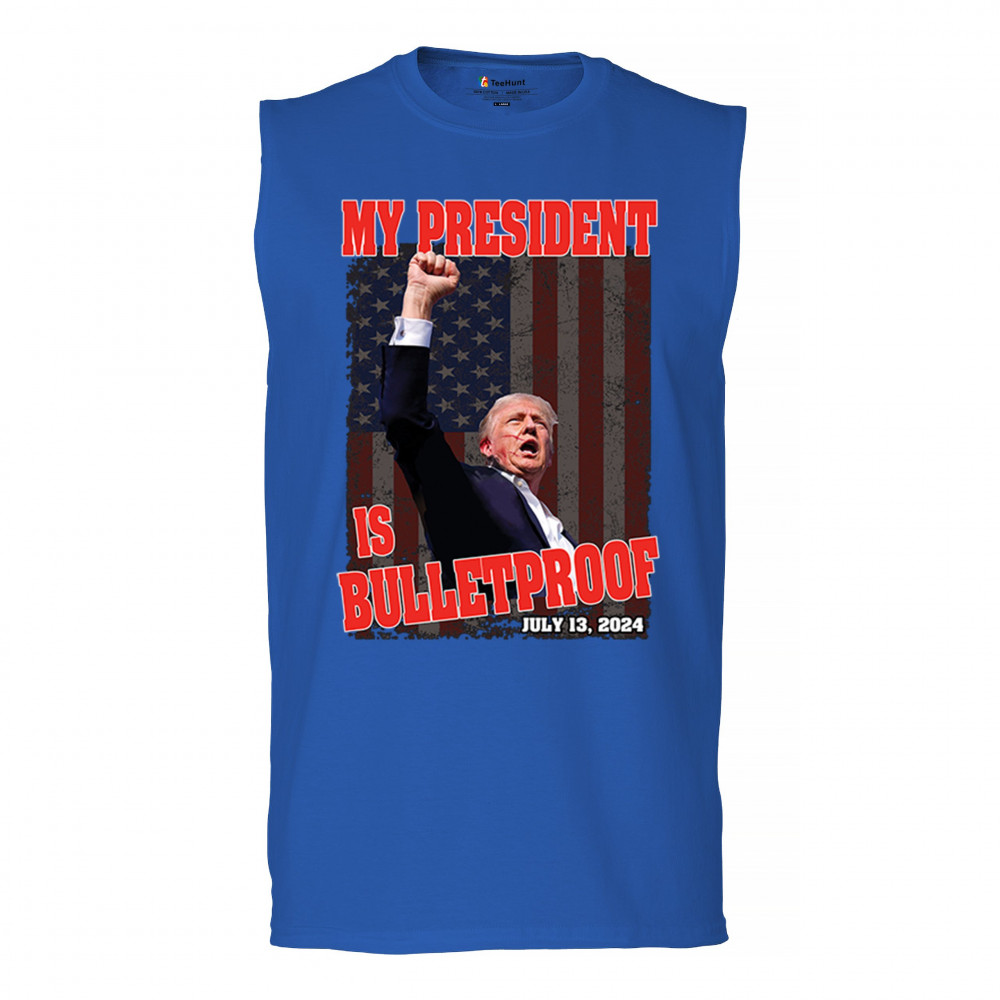 Support Trump with our "My President is Bulletproof" design, perfect for rallies and everyday wear. Show your patriotic pride and conservative values.