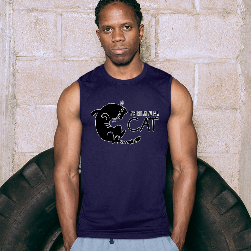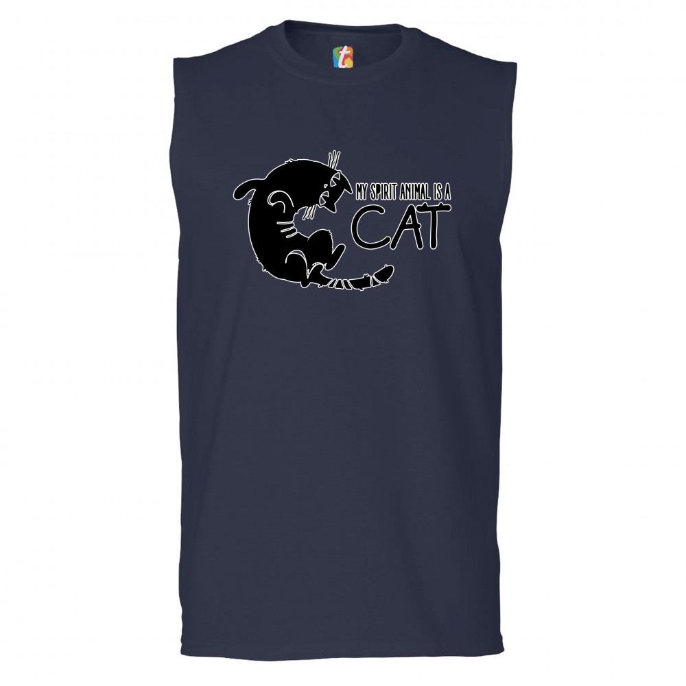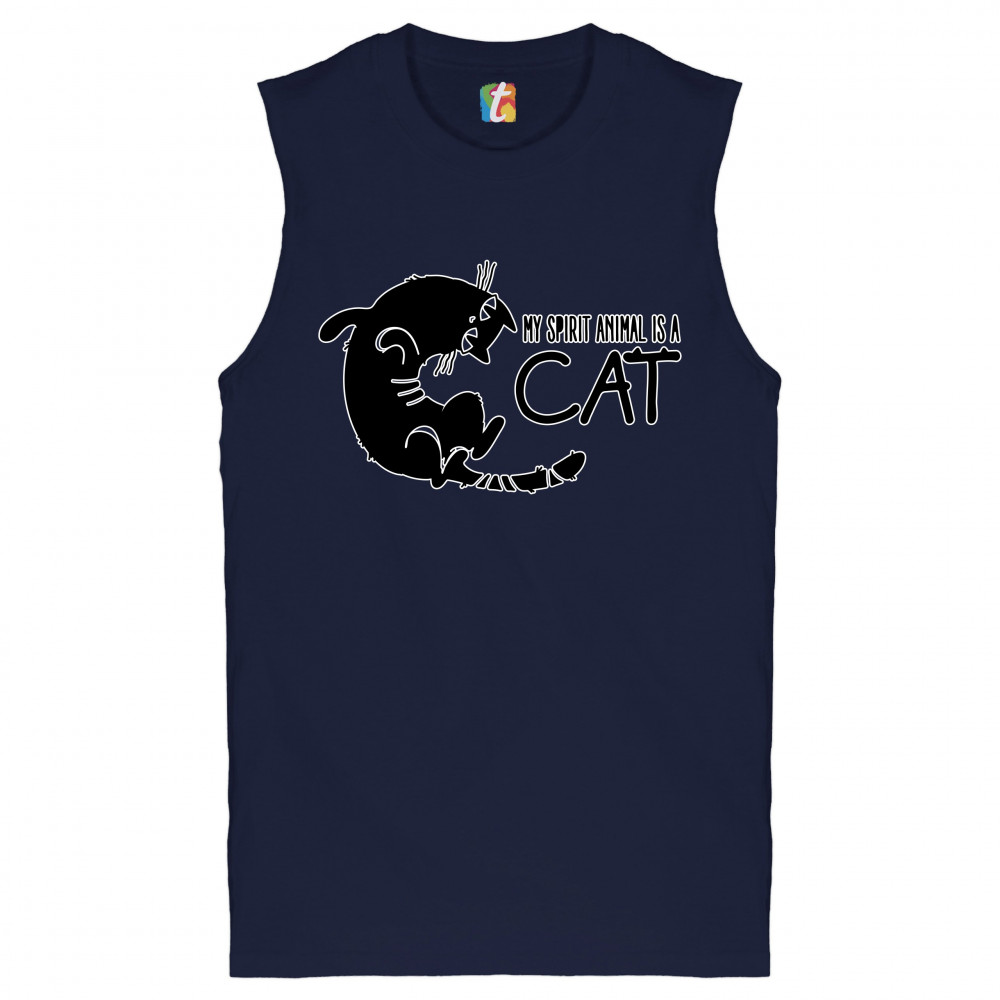 MY SPIRIT ANIMAL IS A CAT muscle shirt cute kitty funny kitten men's navy blue