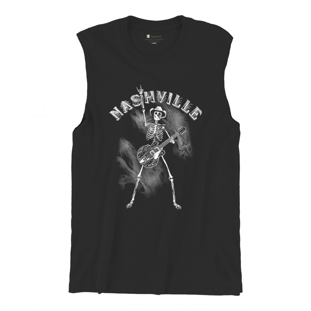 Bold skeleton cowboy design with Nashville grit and country rock vibes. Perfect for fans of music, guitars, and rebel southern style.