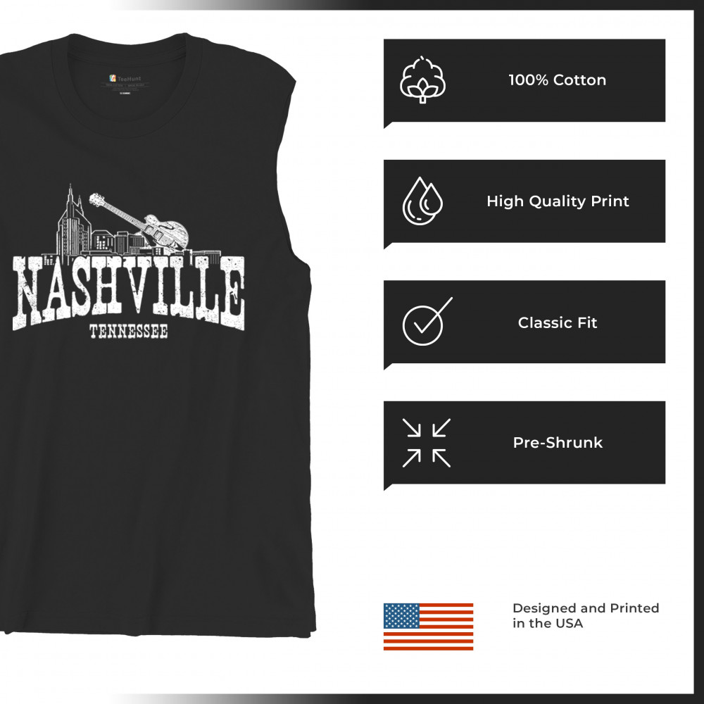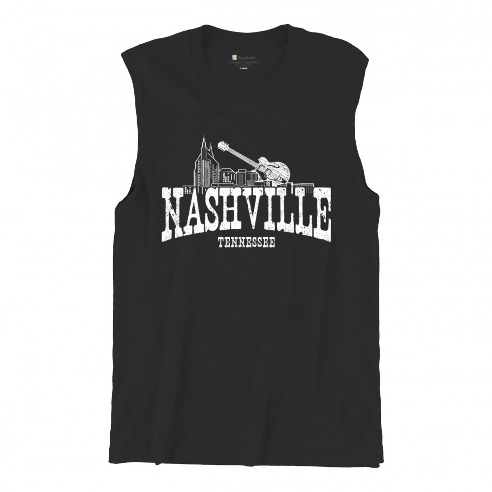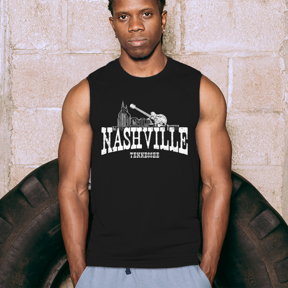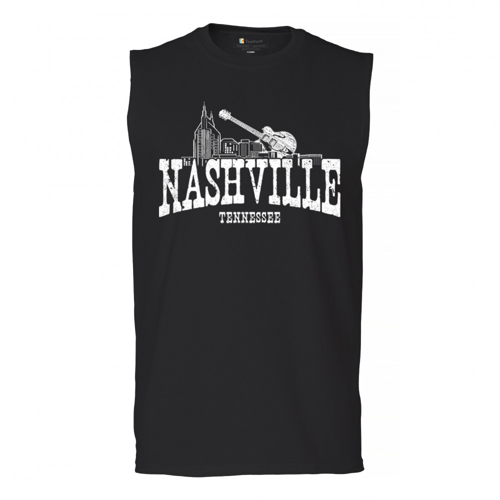 NASHVILLE TENNESSEE men's muscle shirt skyline guitar country music cowboy black