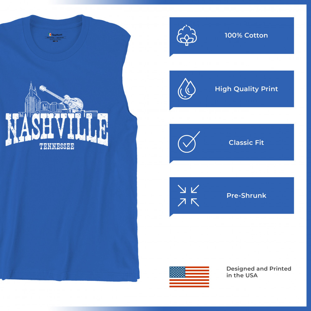 Vintage Nashville skyline and guitar design perfect for music fans, tourists, and proud Tennesseans. Ideal for concerts and city adventures.