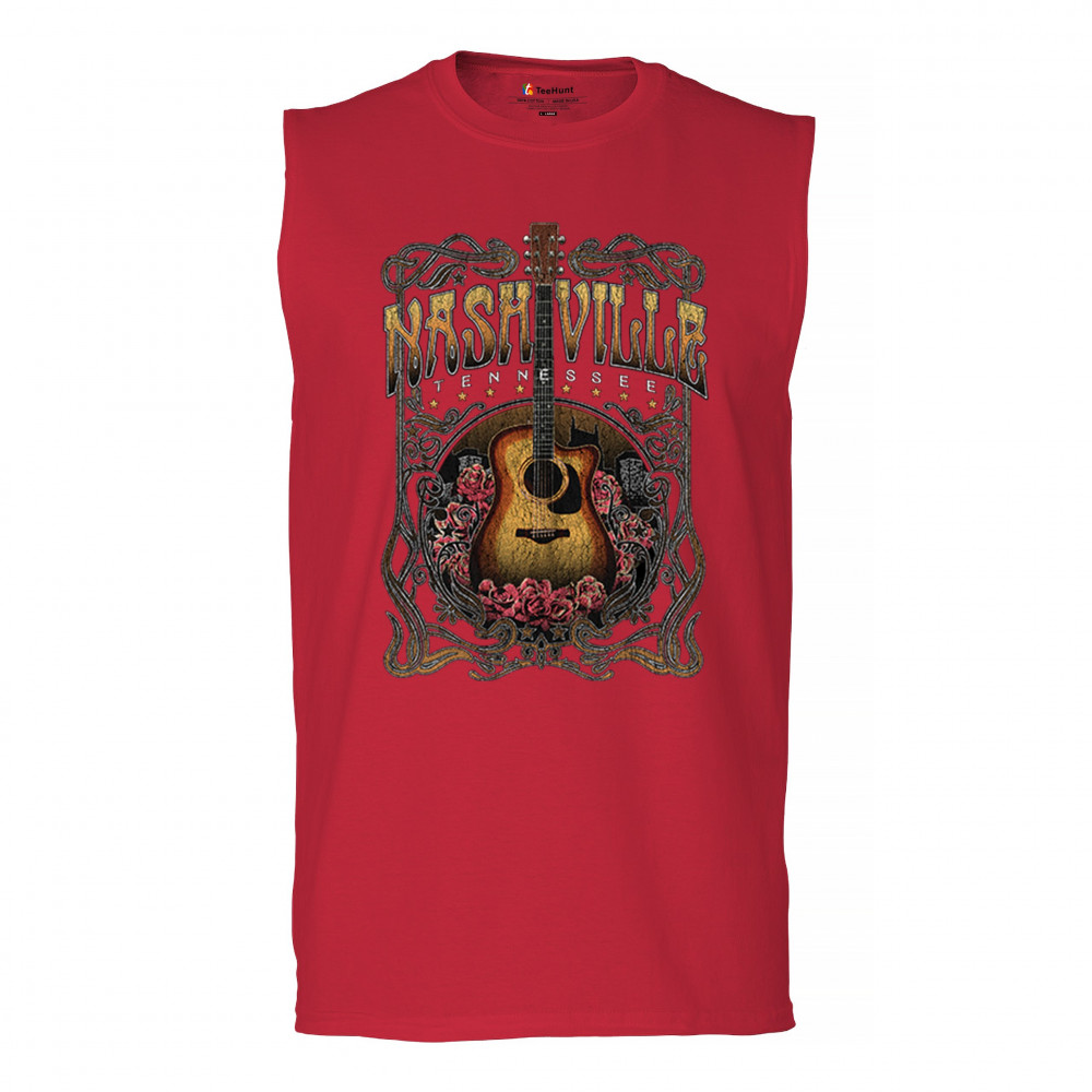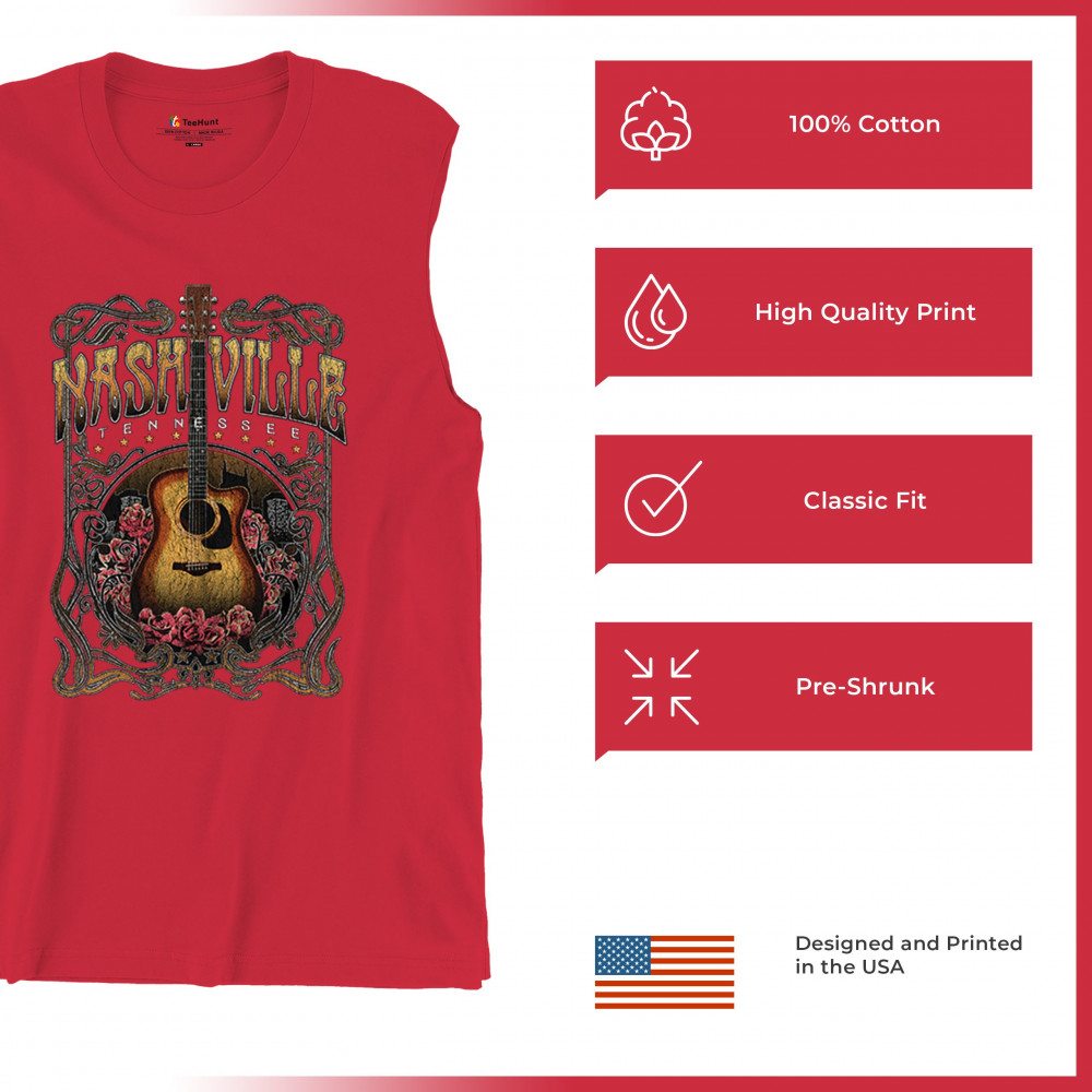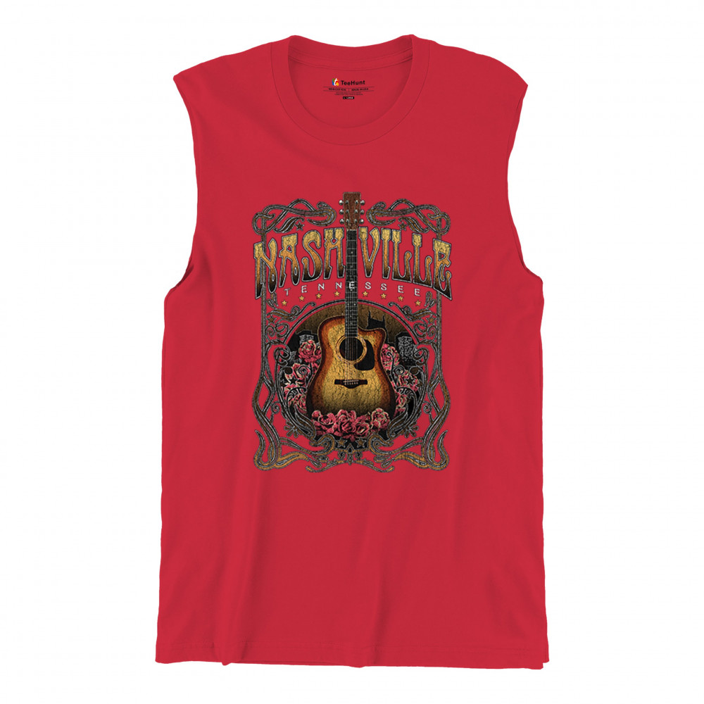 Vintage Nashville Tennessee design with rustic guitar and roses. Great for concerts, country music fans, road trips, and souvenir wear.