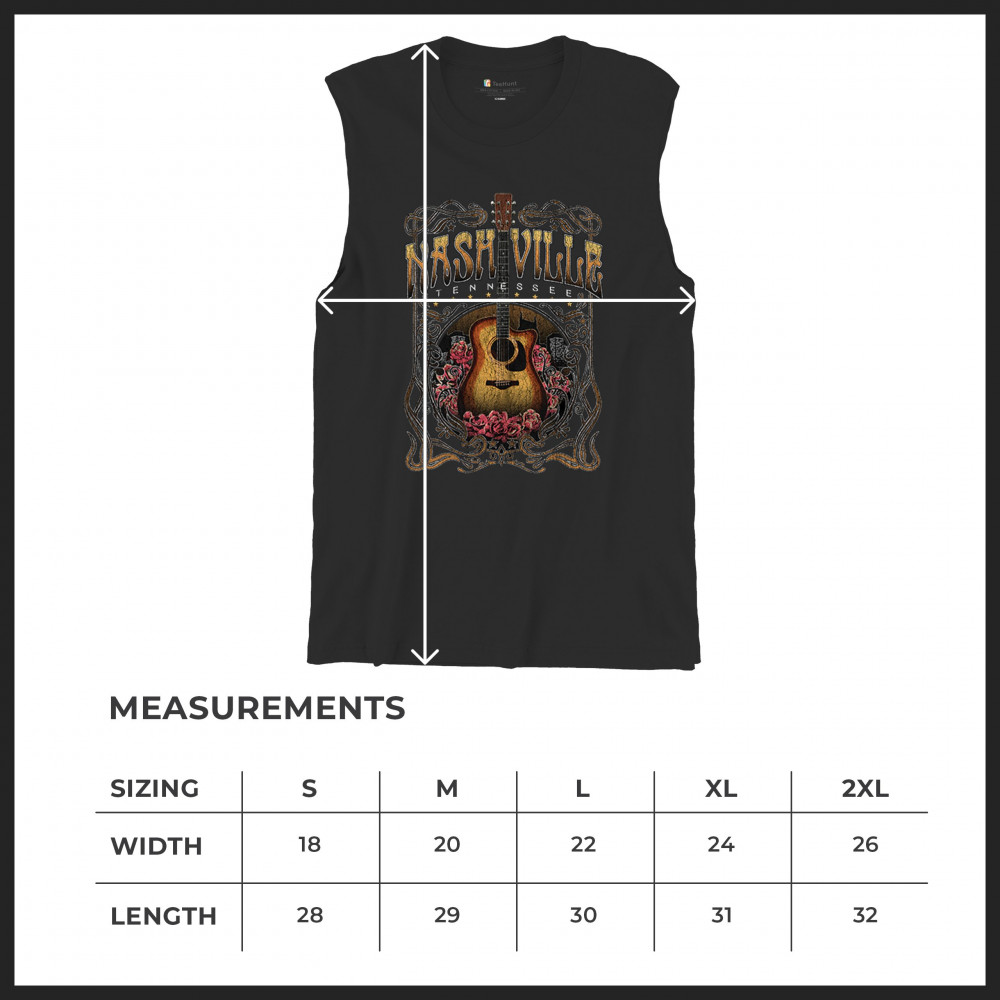 Celebrate the musical soul of Nashville with this vintage guitar and roses design. Perfect for fans of country, bluegrass, and folk music, it captures the charm of Music City with Western-style artwork. Great as a souvenir or for wearing to concerts, tours, and Tennessee road adventures.