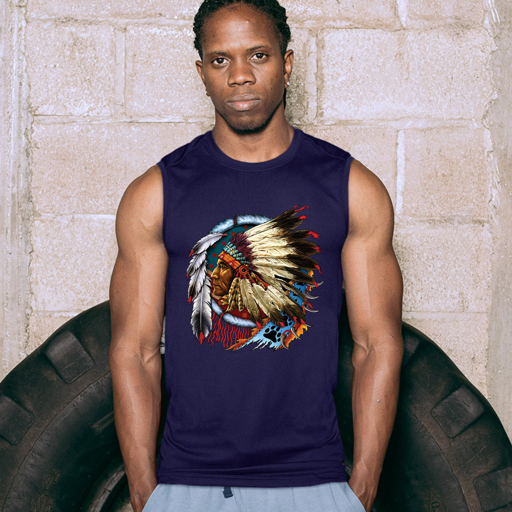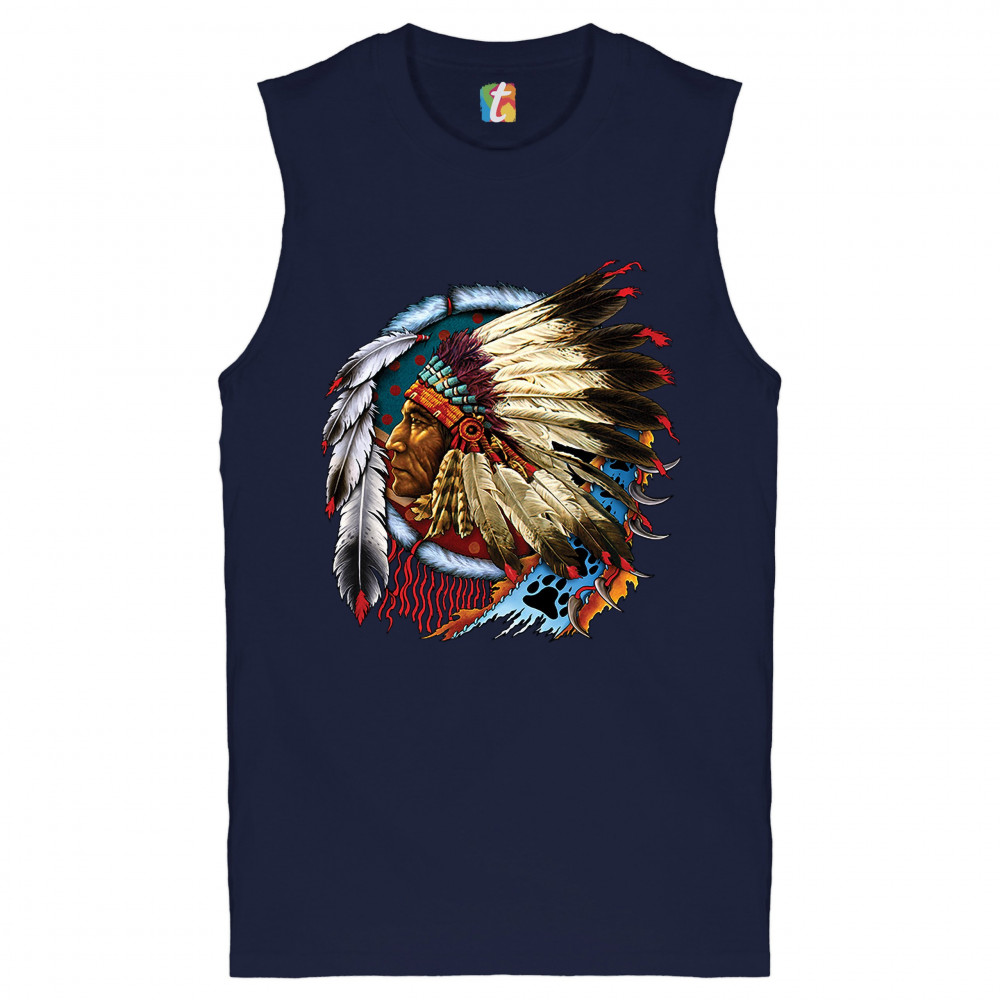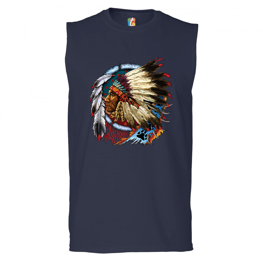 NATIVE AMERICAN CHIEF muscle shirt war bonnet dreamcatcher indigenous men's navy blue