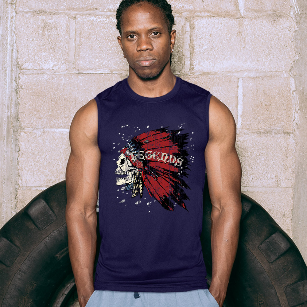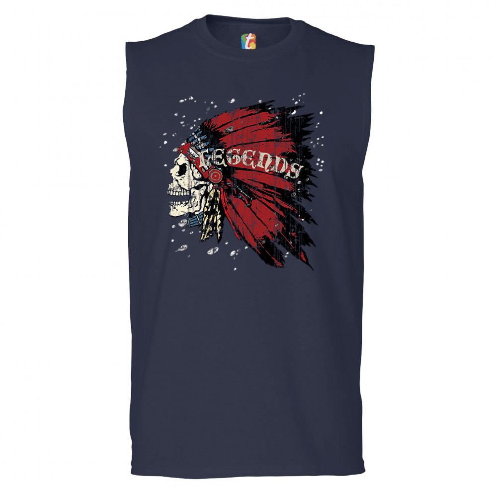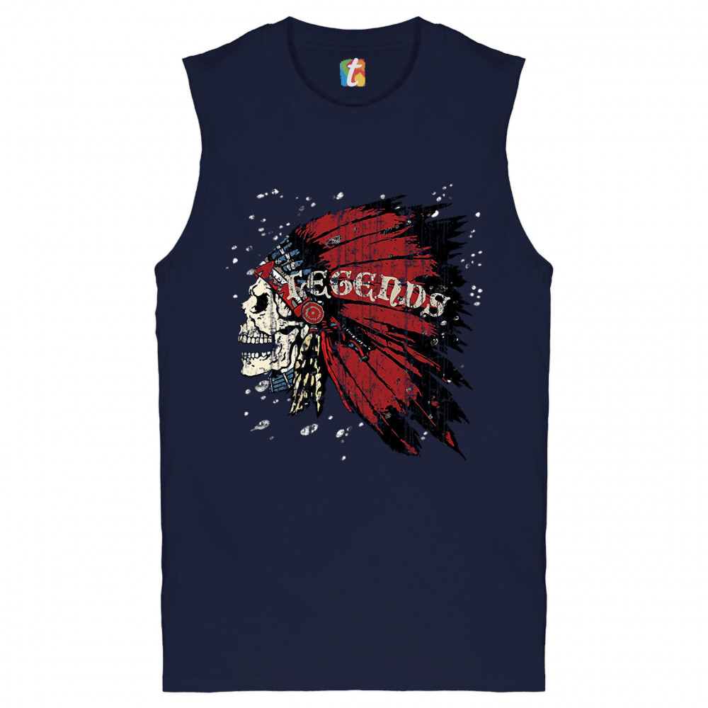 NATIVE AMERICAN LEGENDS muscle shirt skull face war bonnet headdress men's navy blue