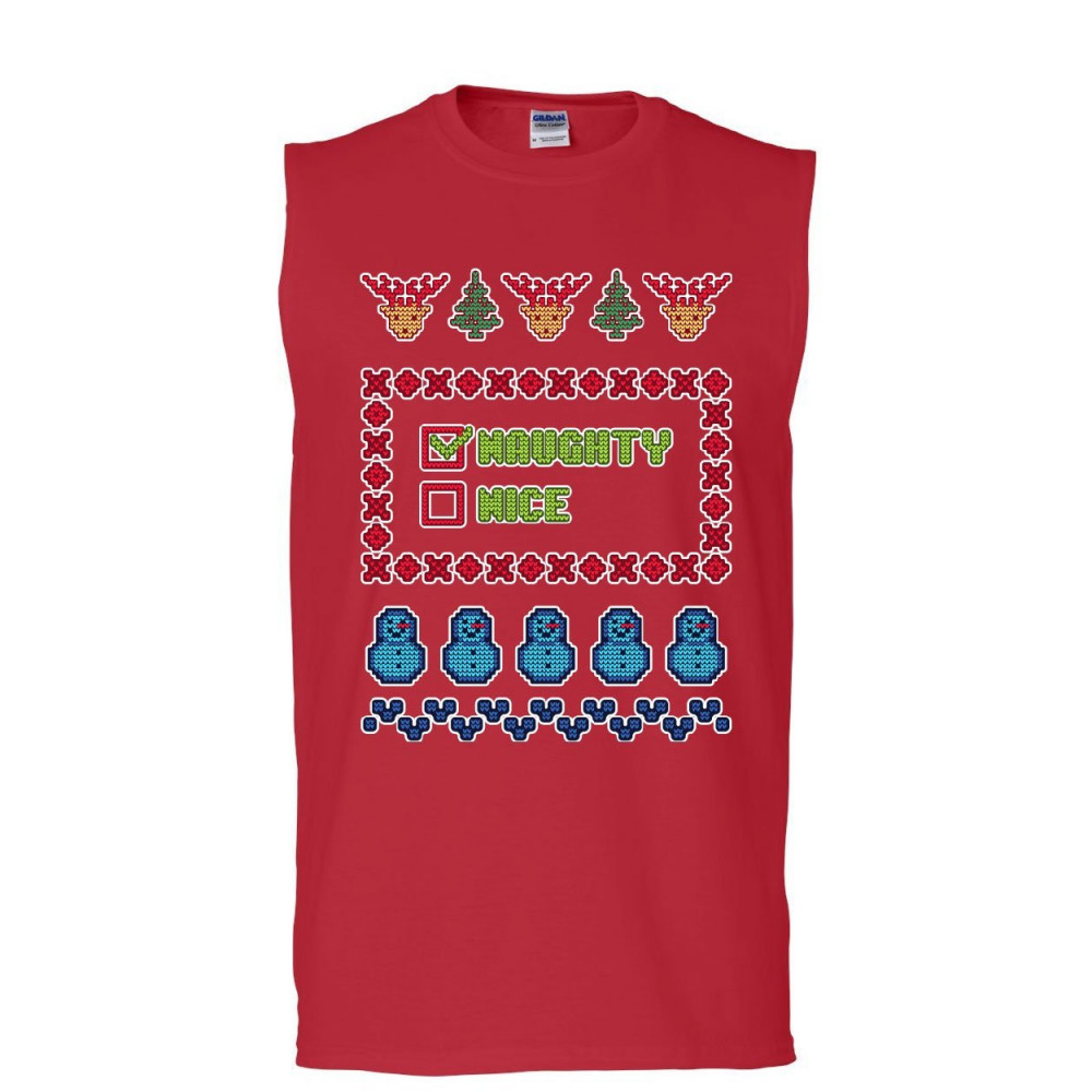 NAUGHTY OR NICE ugly sweater muscle shirt christmas xmas holiday list sleeveless red