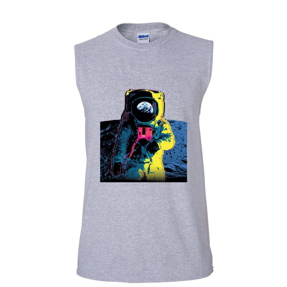 NEON ASTRONAUT muscle shirt moon landing space travel universe earth sleeveless gray