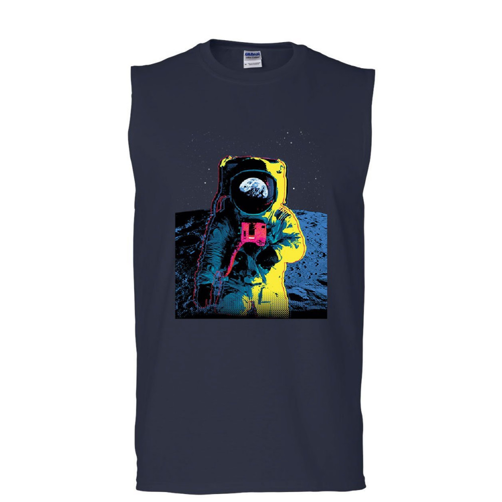 NEON ASTRONAUT muscle shirt moon landing space travel universe earth sleeveless navy blue