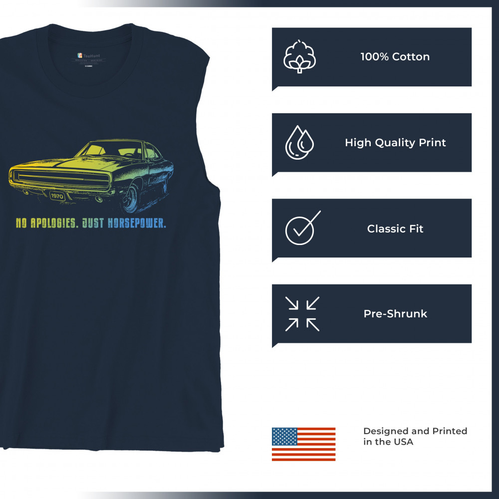 Bold 1970 muscle car design with gradient pop. No apologies, just horsepower—perfect for car shows, gearheads, and performance lovers.