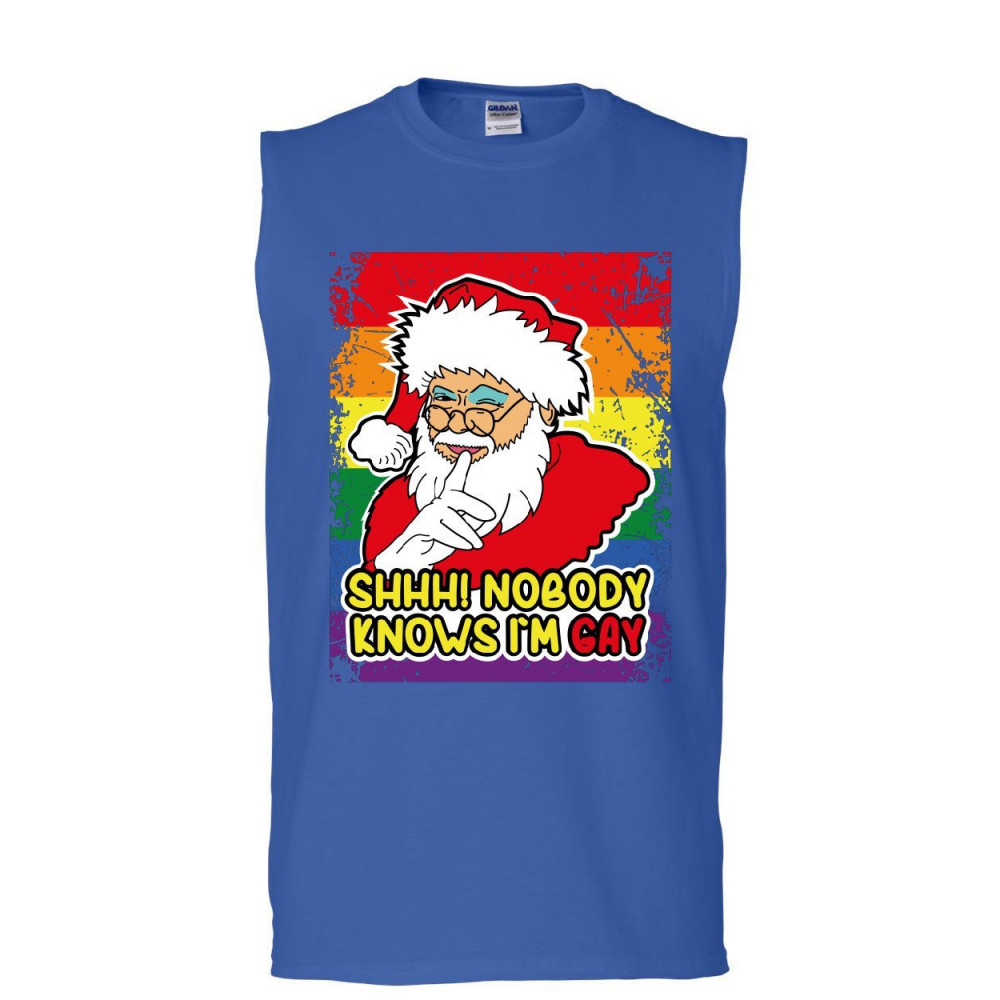 NOBODY KNOWS I'M GAY muscle shirt christmas santa lgbt xmas ho ho ho sleeveless blue