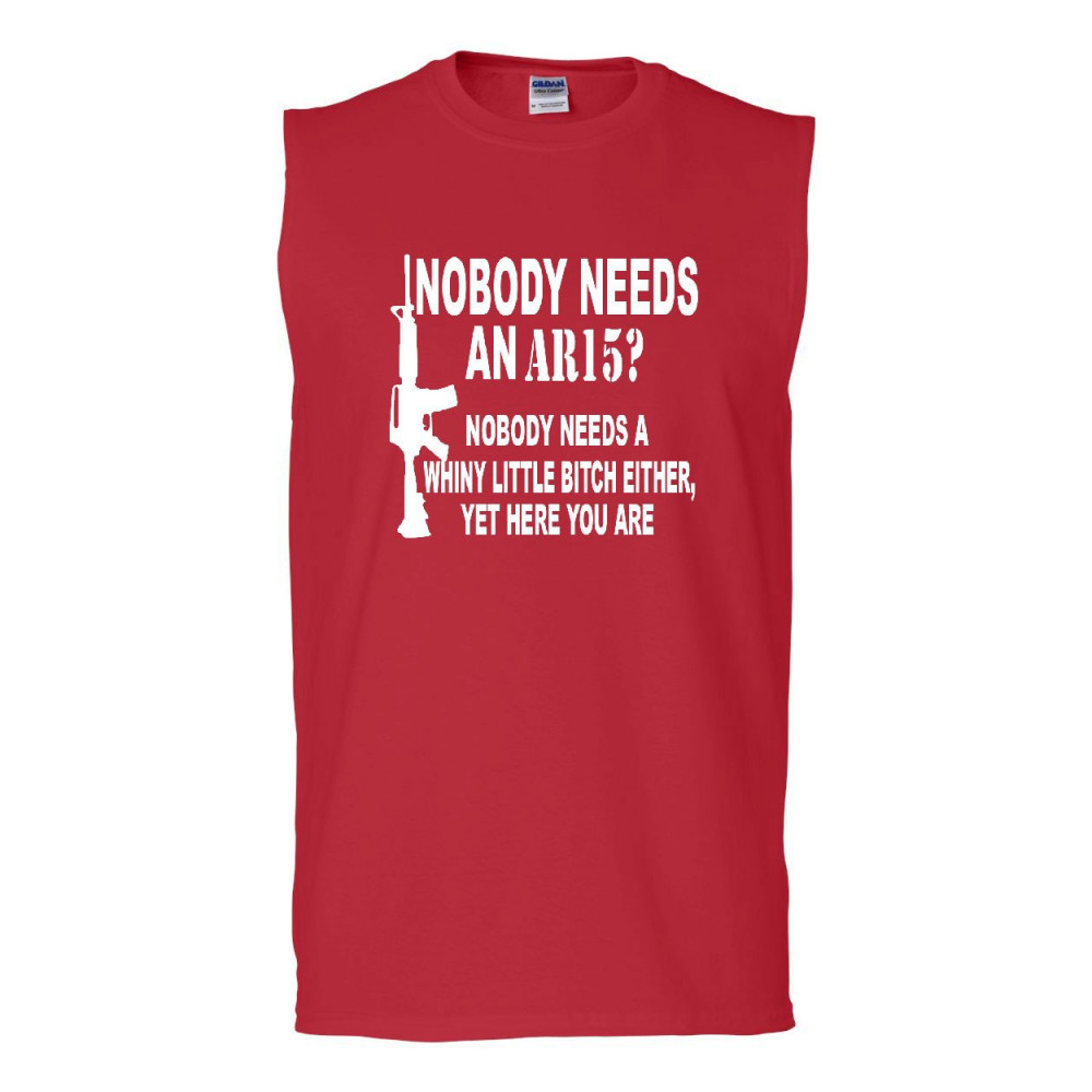 NOBODY NEEDS AN AR15? muscle shirt funny offensive humor political firearms gun rights red