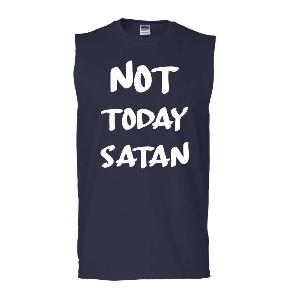 NOT TODAY SATAN muscle shirt religious funny jesus religion faith navy blue