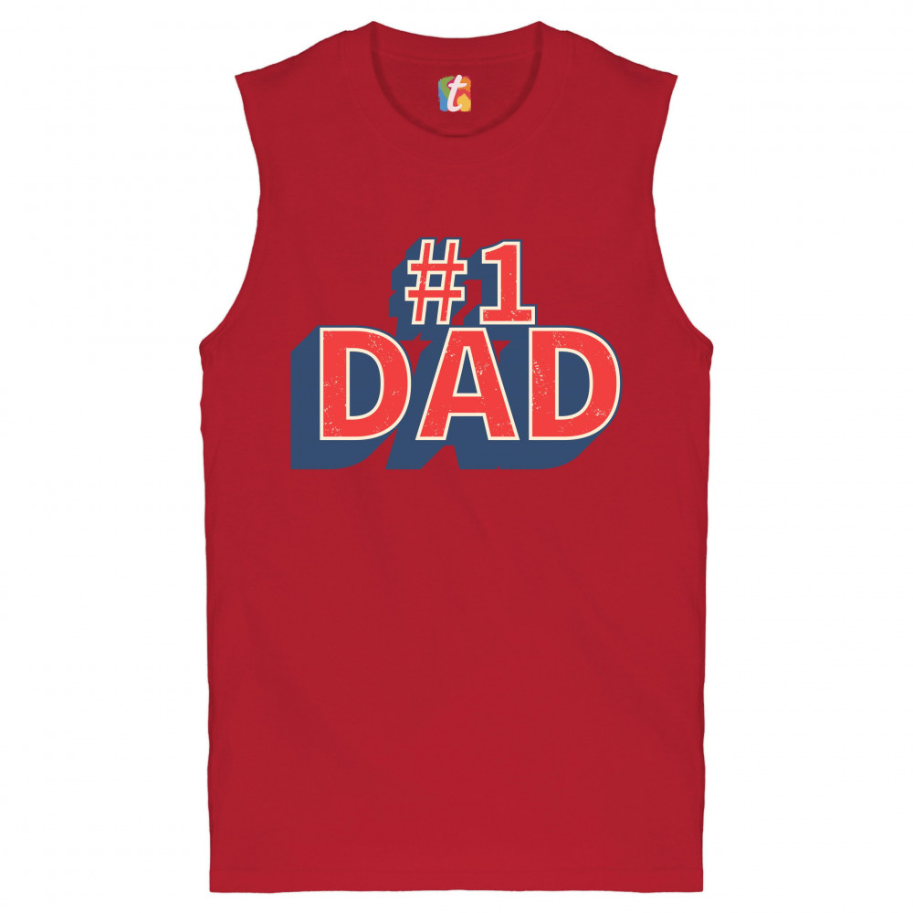 NUMBER 1 DAD muscle shirt father's day world's greatest dad fatherhood men's red