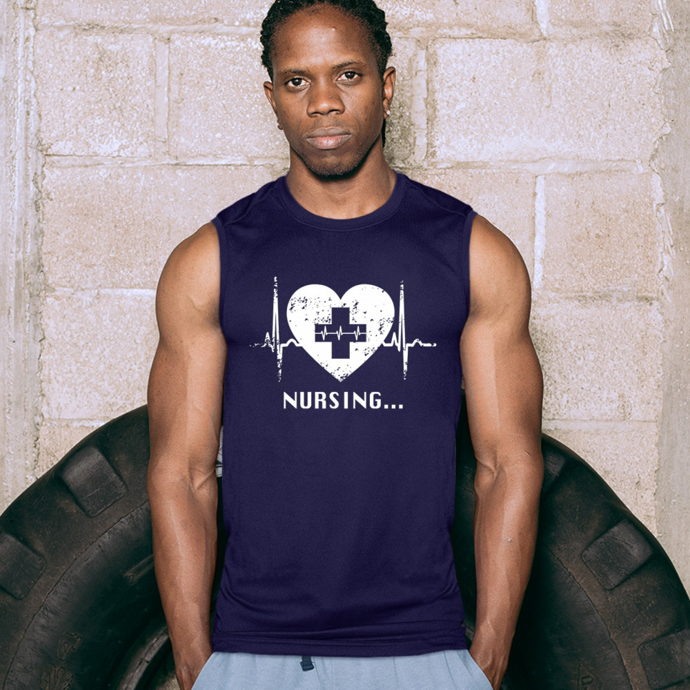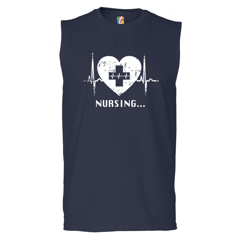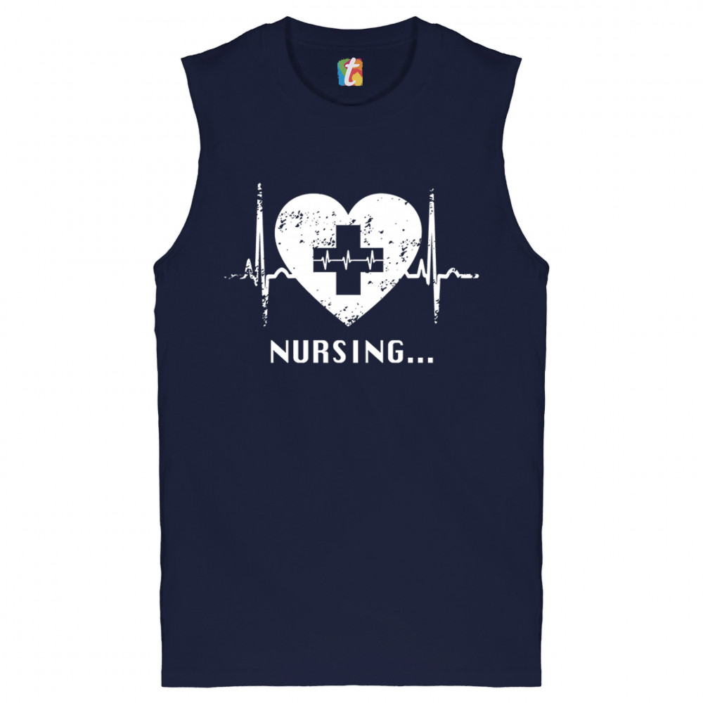 NURSING HEARTBEAT muscle shirt cpr first aid medical assistant emt ems men's navy blue