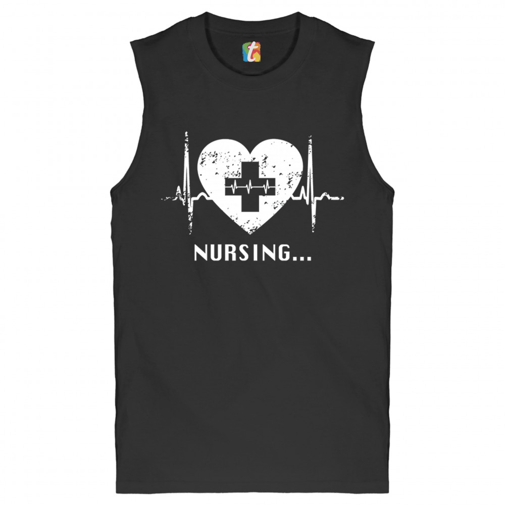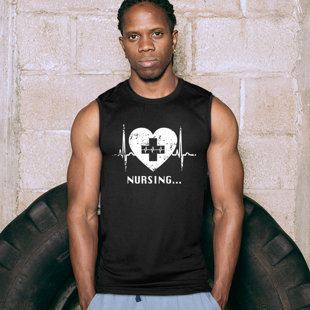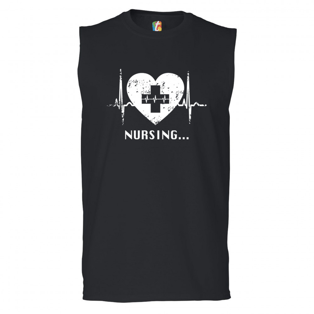 NURSING HEARTBEAT muscle shirt cpr first aid medical assistant emt ems men's black