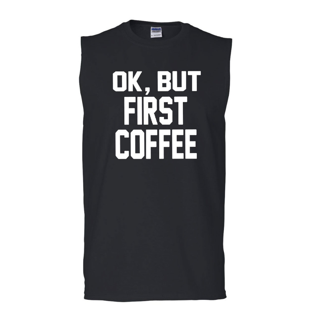 OK, BUT FIRST COFFEE muscle shirt coffee drinker black