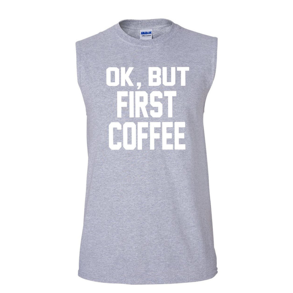 OK, BUT FIRST COFFEE muscle shirt coffee drinker gray