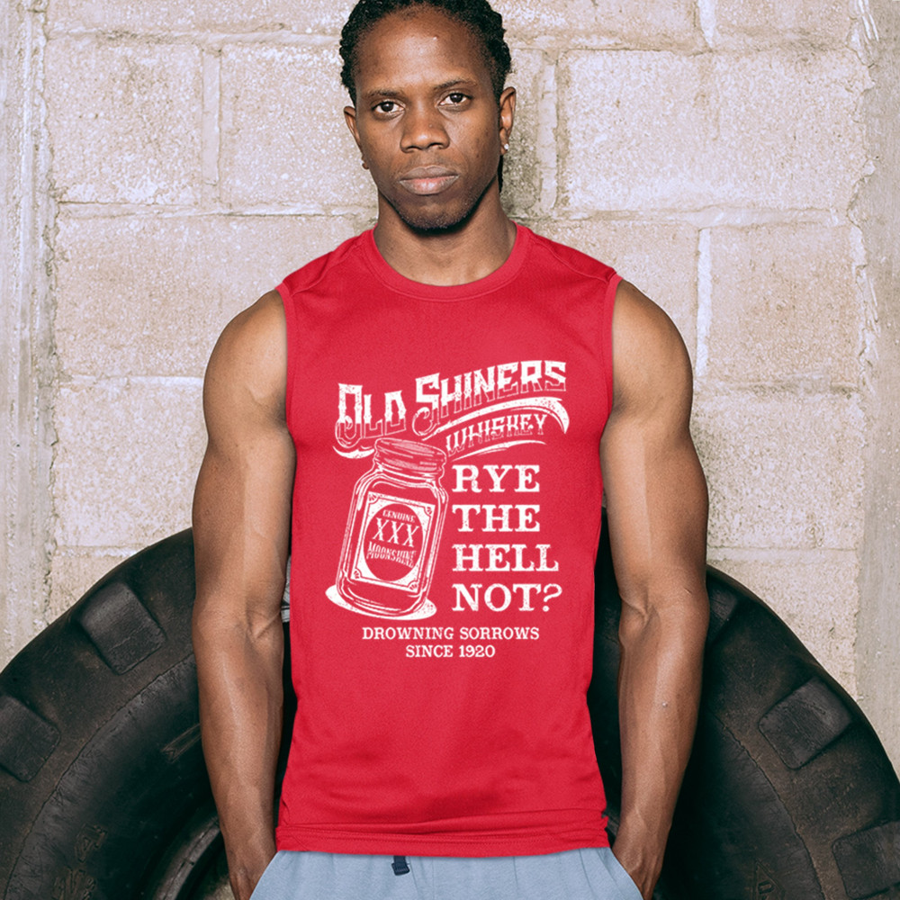 A funny print featuring a mason jar with a label that says: "Genuine XXX Moonshine". The print also says: "Old Shiners Whiskey, Rye the Hell Not? Drowning Sorrows Since 1920". A great choice for an old school person who doesn't mind a glass or two.