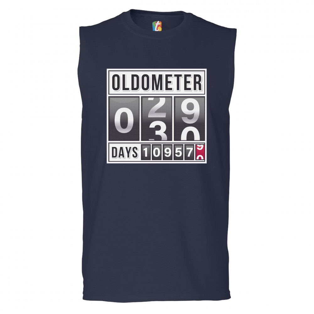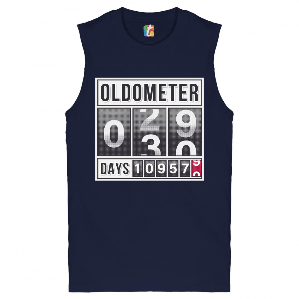 OLDOMETER 29-30 muscle shirt funny odometer anniversary birthday men's navy blue