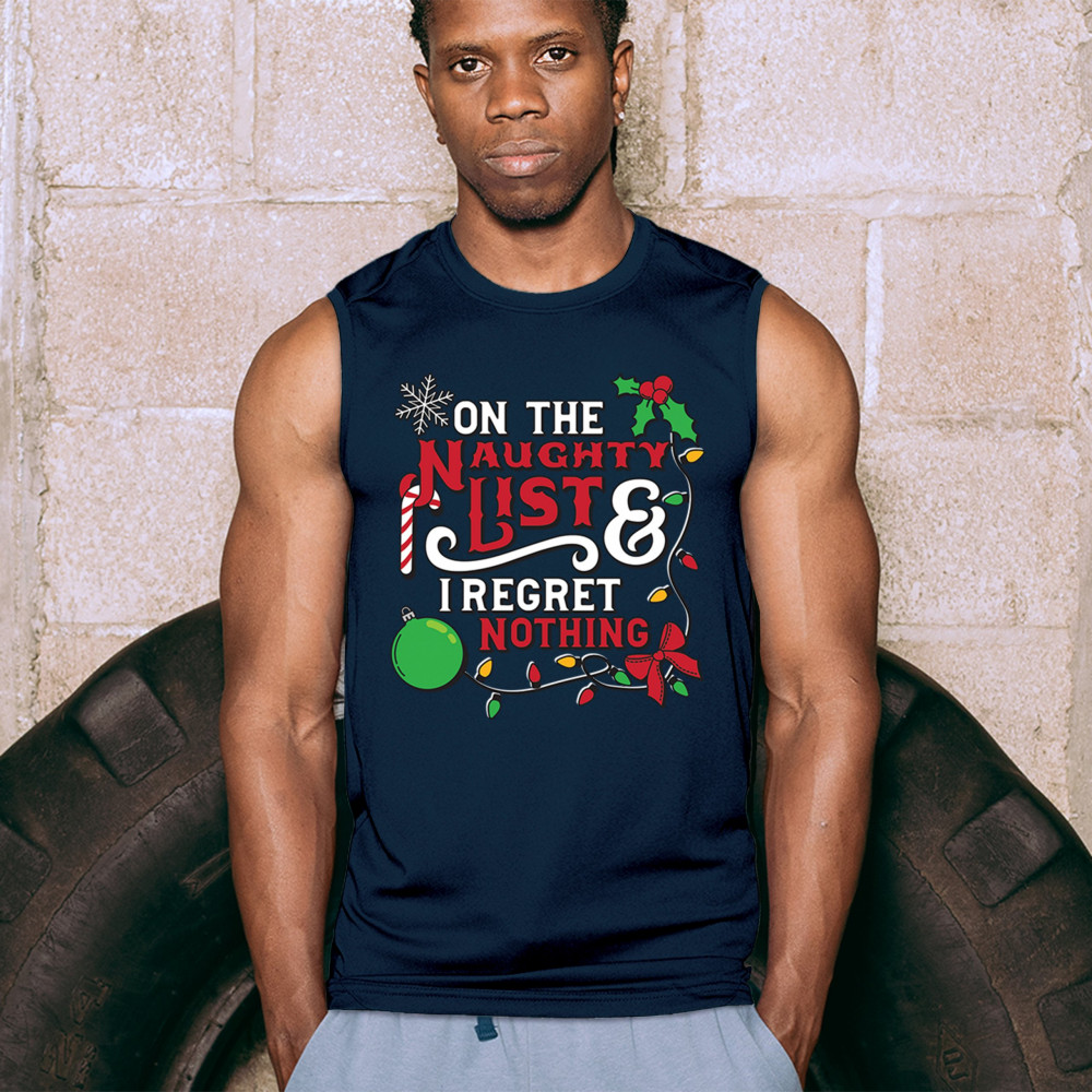 Celebrate the holidays with the playful “Naughty List & I Regret Nothing†design. Perfect for festive gatherings, ugly sweater parties, and holiday fun!