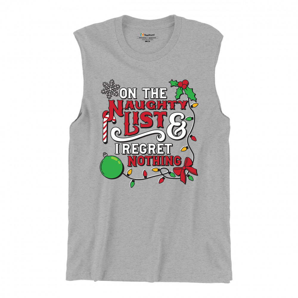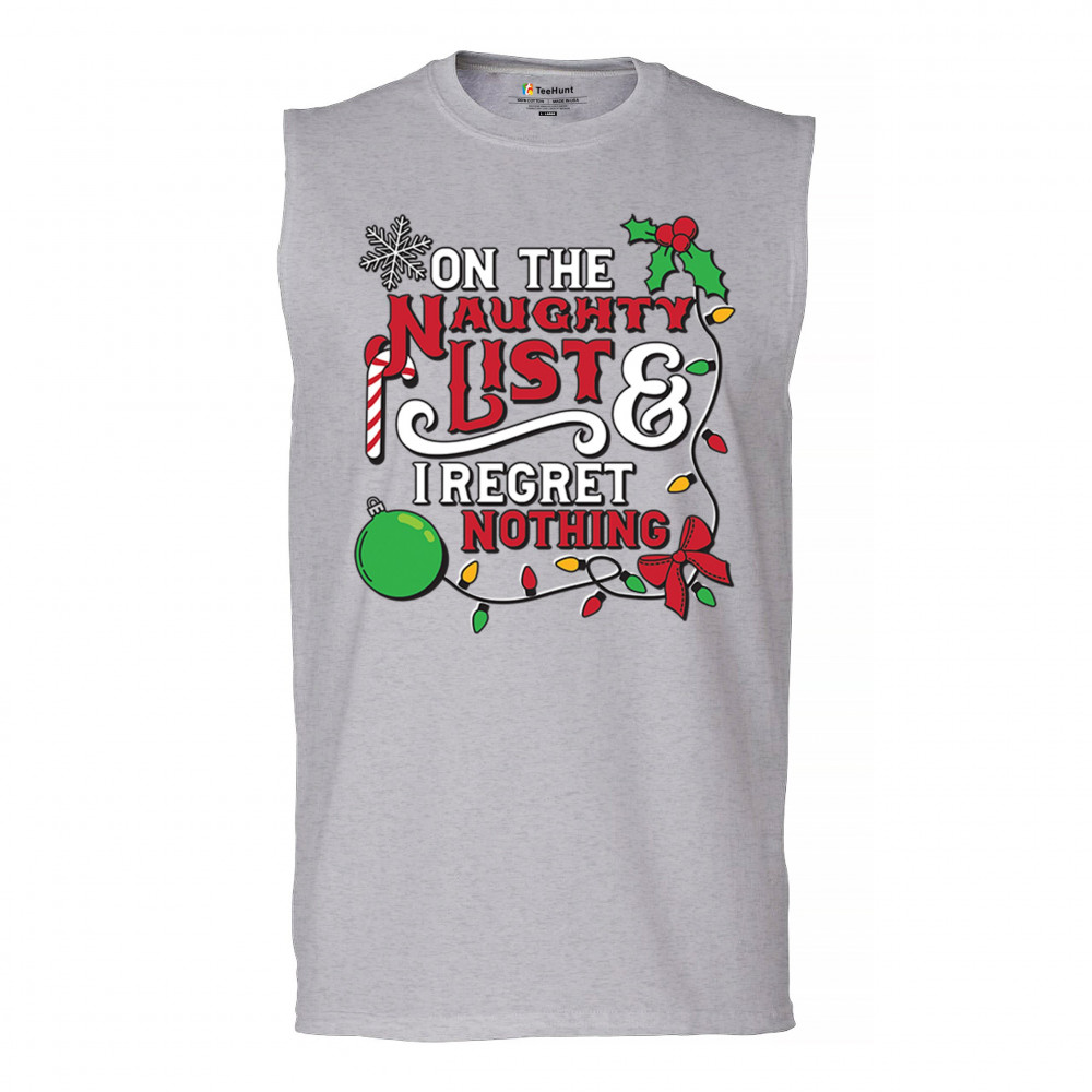 Celebrate the holidays with the playful “Naughty List & I Regret Nothing†design. Perfect for festive gatherings, ugly sweater parties, and holiday fun!
