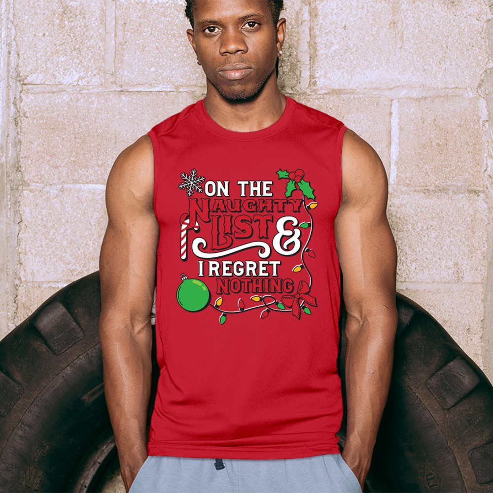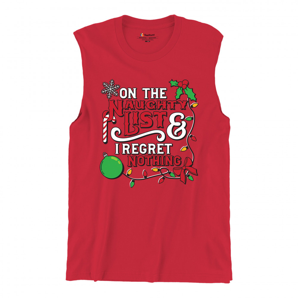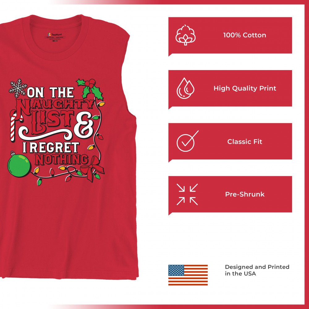 Celebrate the holidays with the playful “Naughty List & I Regret Nothing†design. Perfect for festive gatherings, ugly sweater parties, and holiday fun!