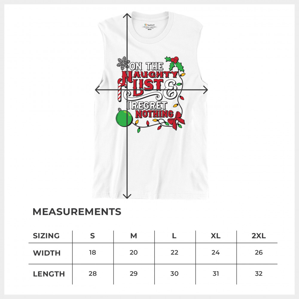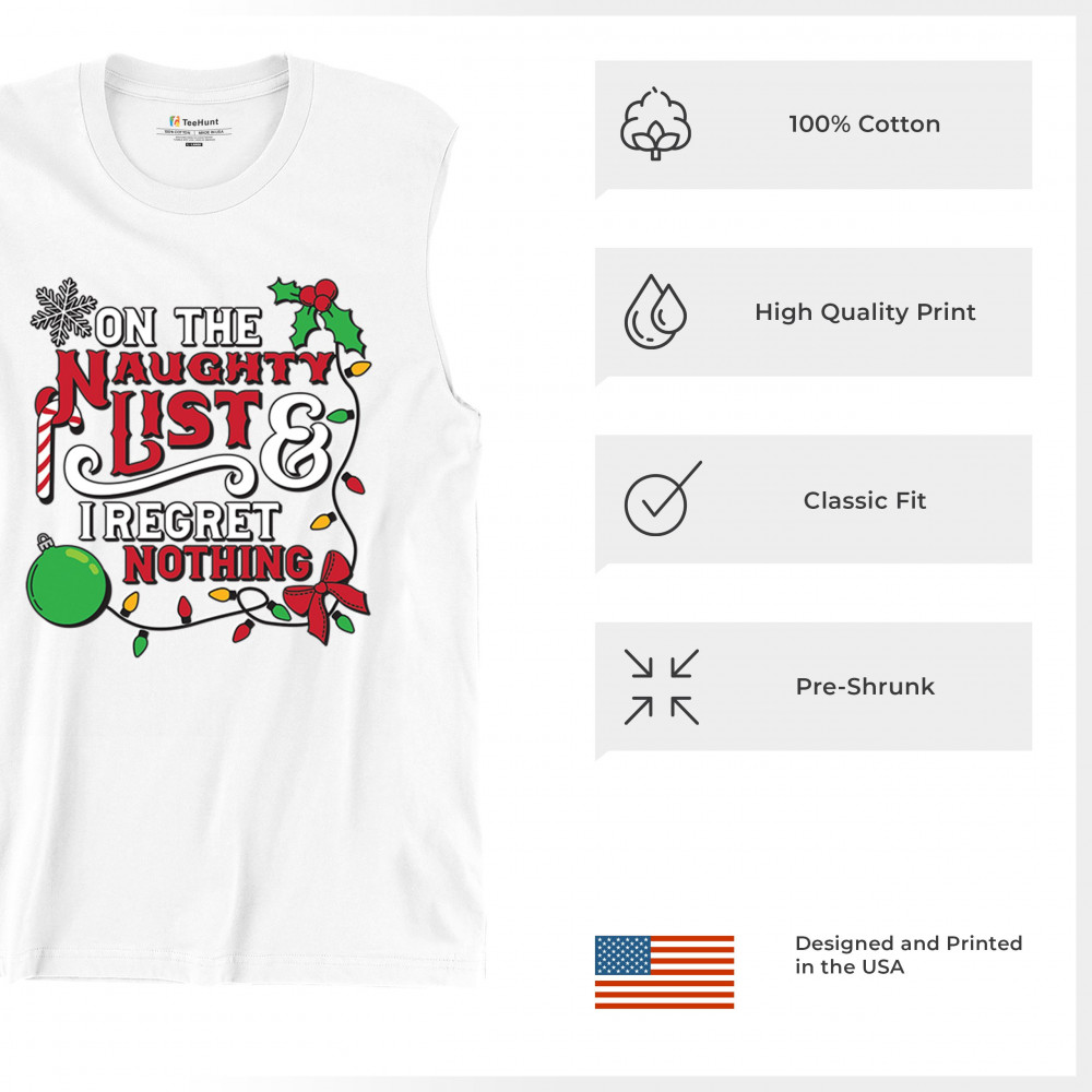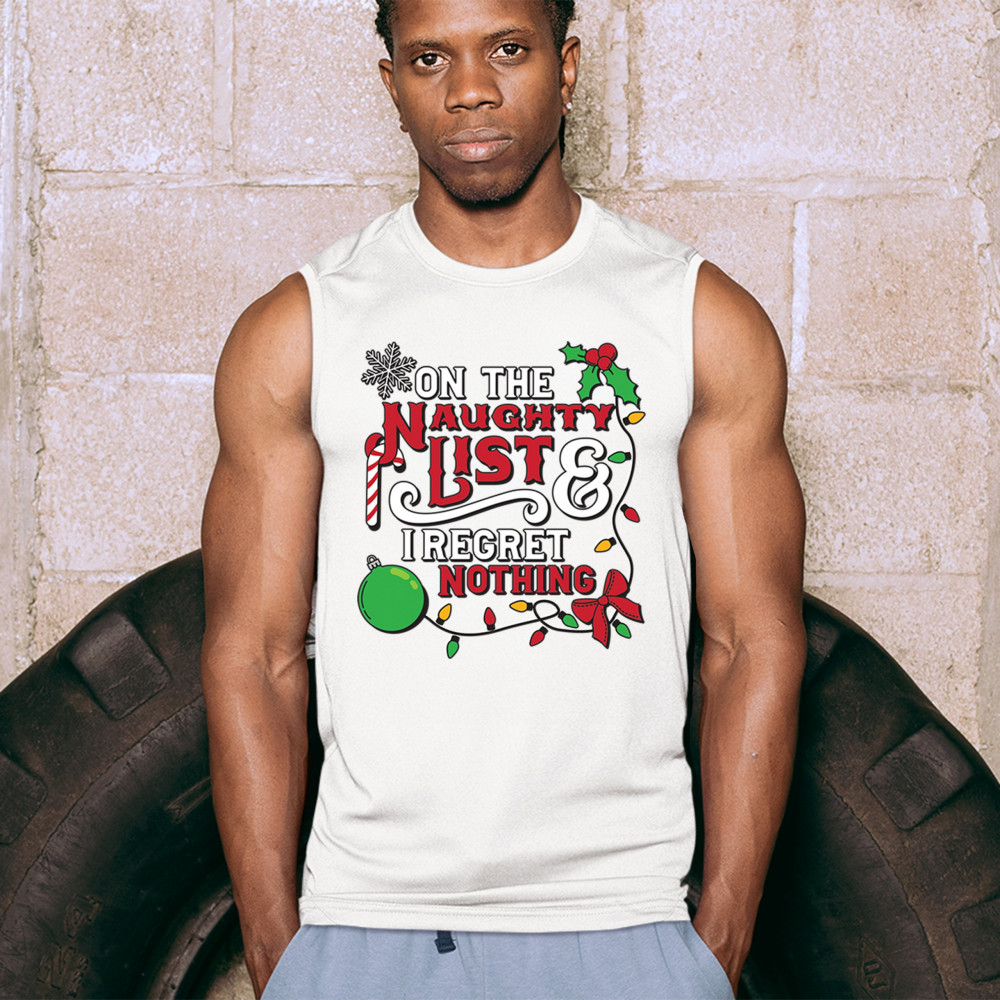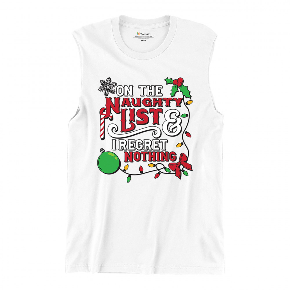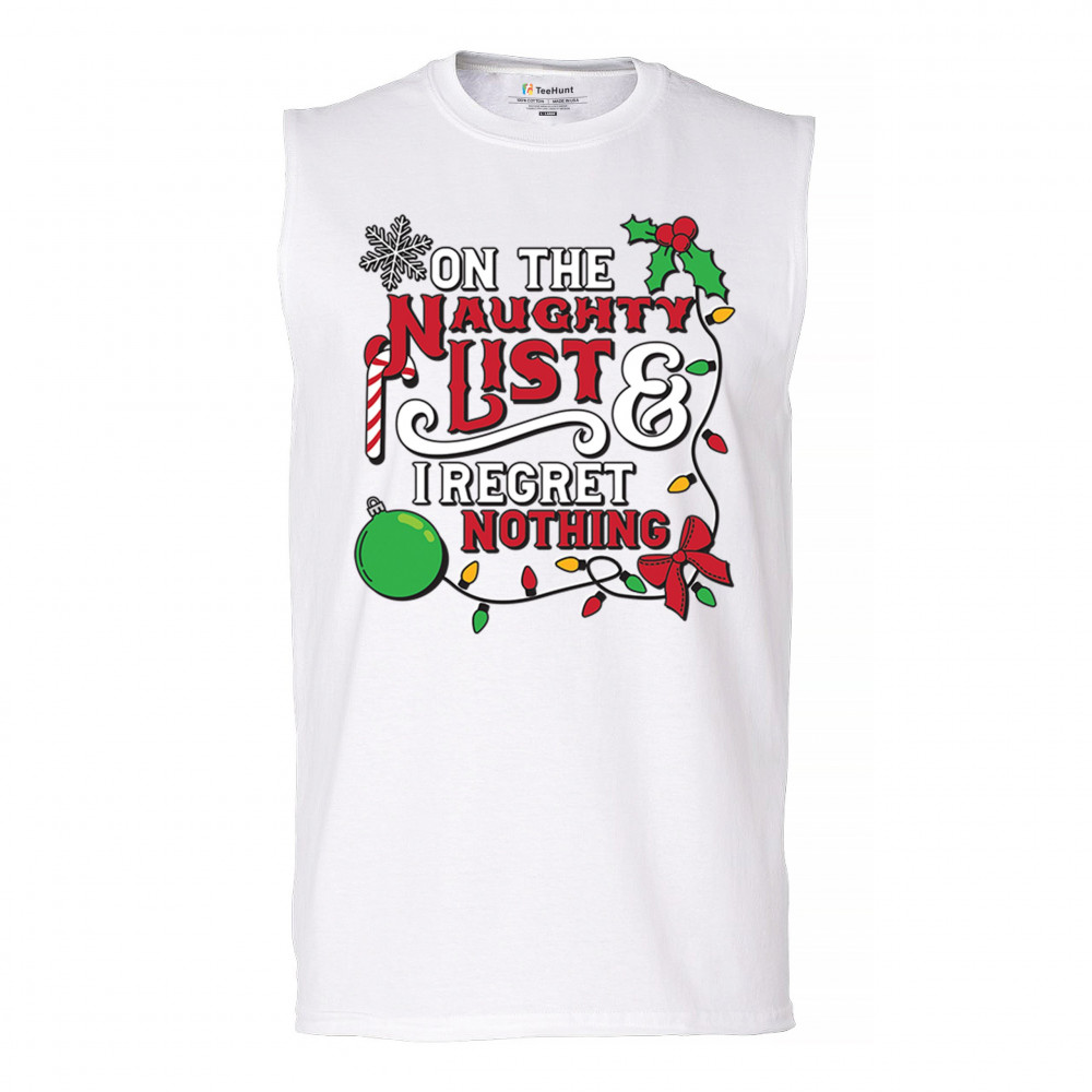 Celebrate the holidays with the playful “Naughty List & I Regret Nothing†design. Perfect for festive gatherings, ugly sweater parties, and holiday fun!