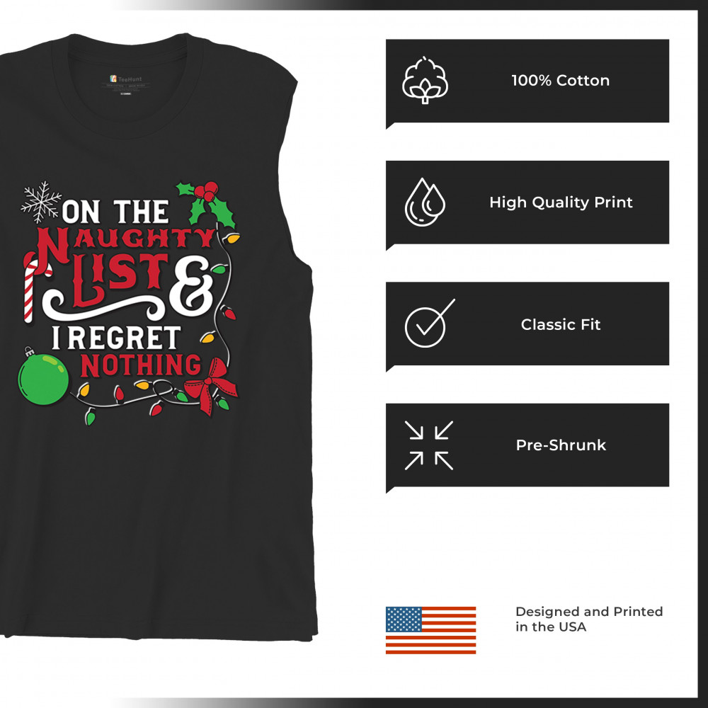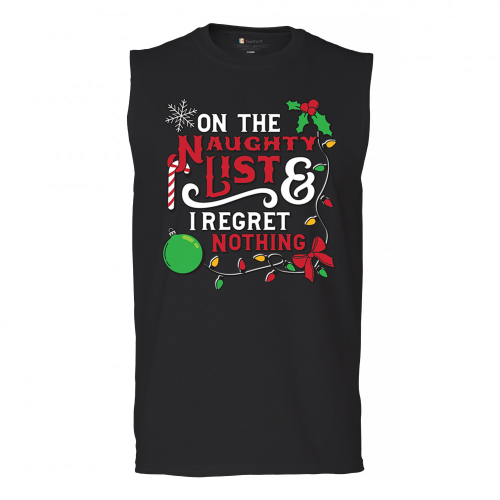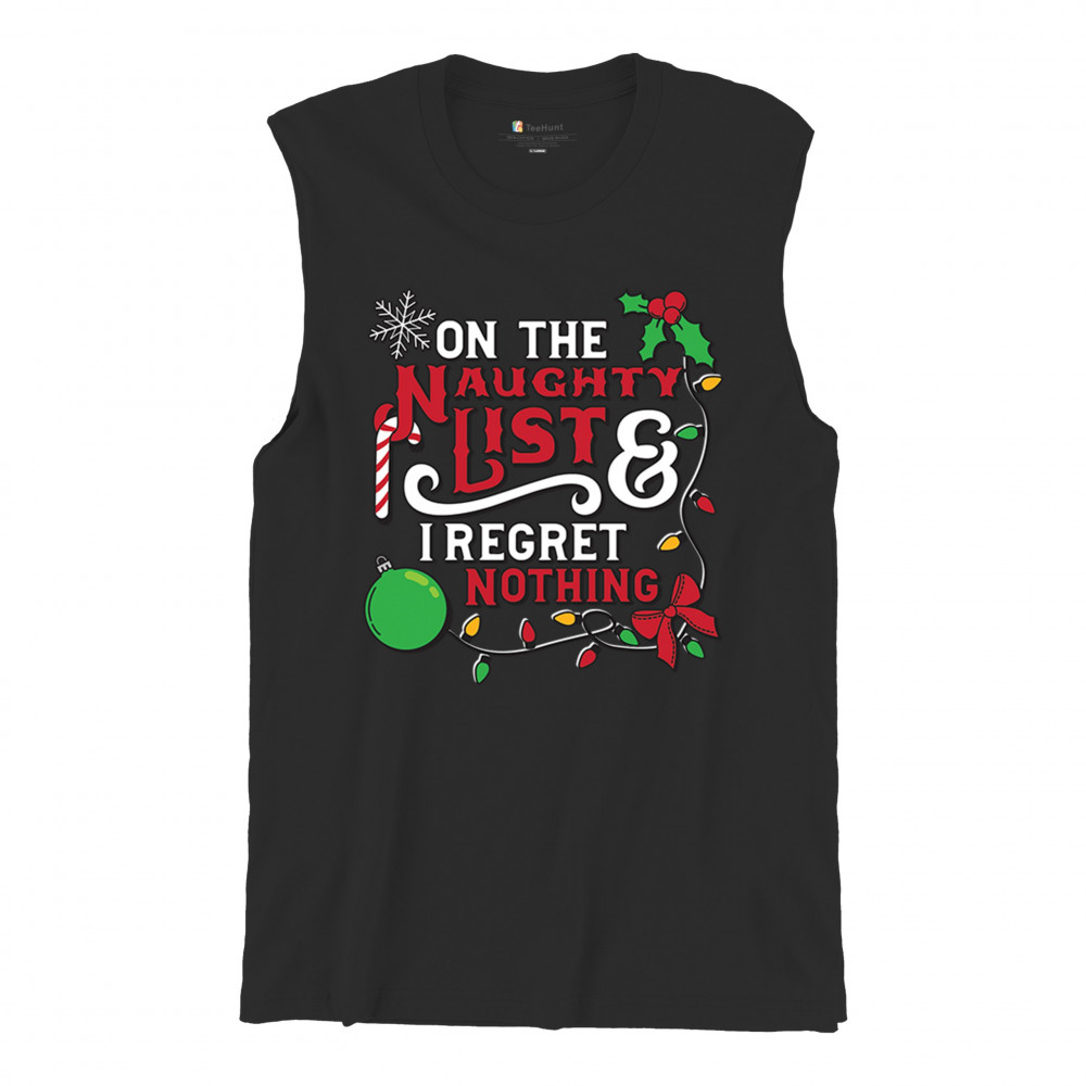 Celebrate the holidays with the playful “Naughty List & I Regret Nothing†design. Perfect for festive gatherings, ugly sweater parties, and holiday fun!