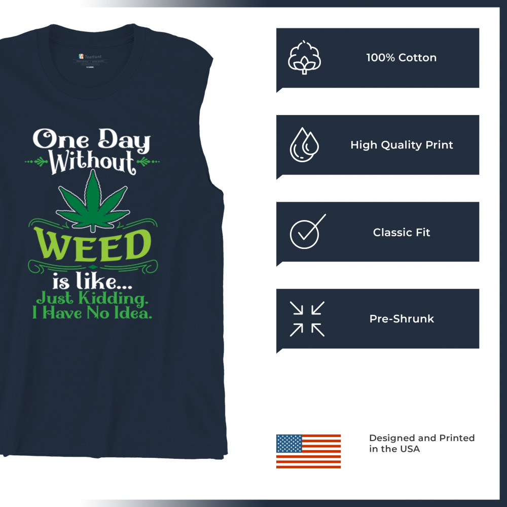 Humorous "One Day Without Weed" design with a bold cannabis leaf. Perfect for fans of Mary Jane, stoned humor, and relaxed, trippy style. Ideal for chill vibes.