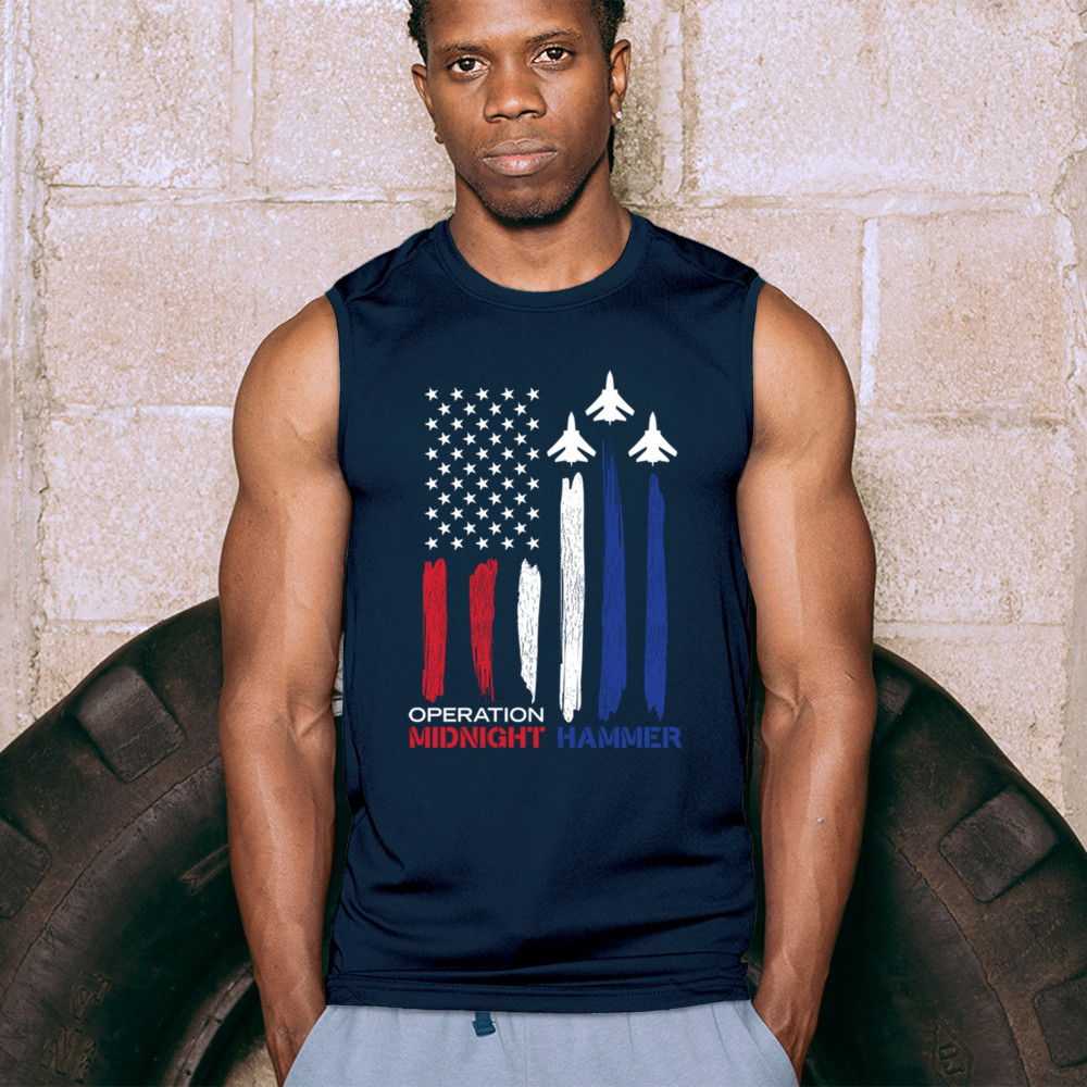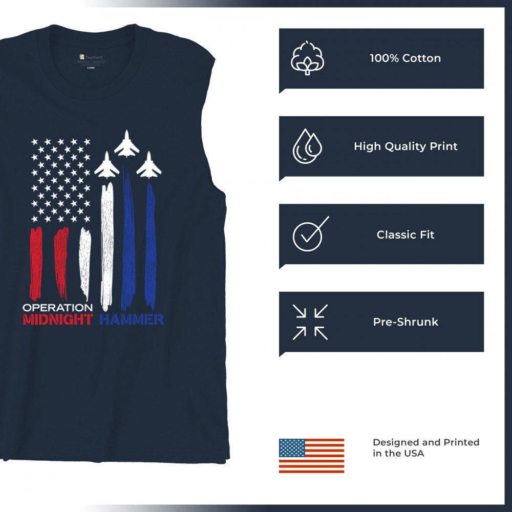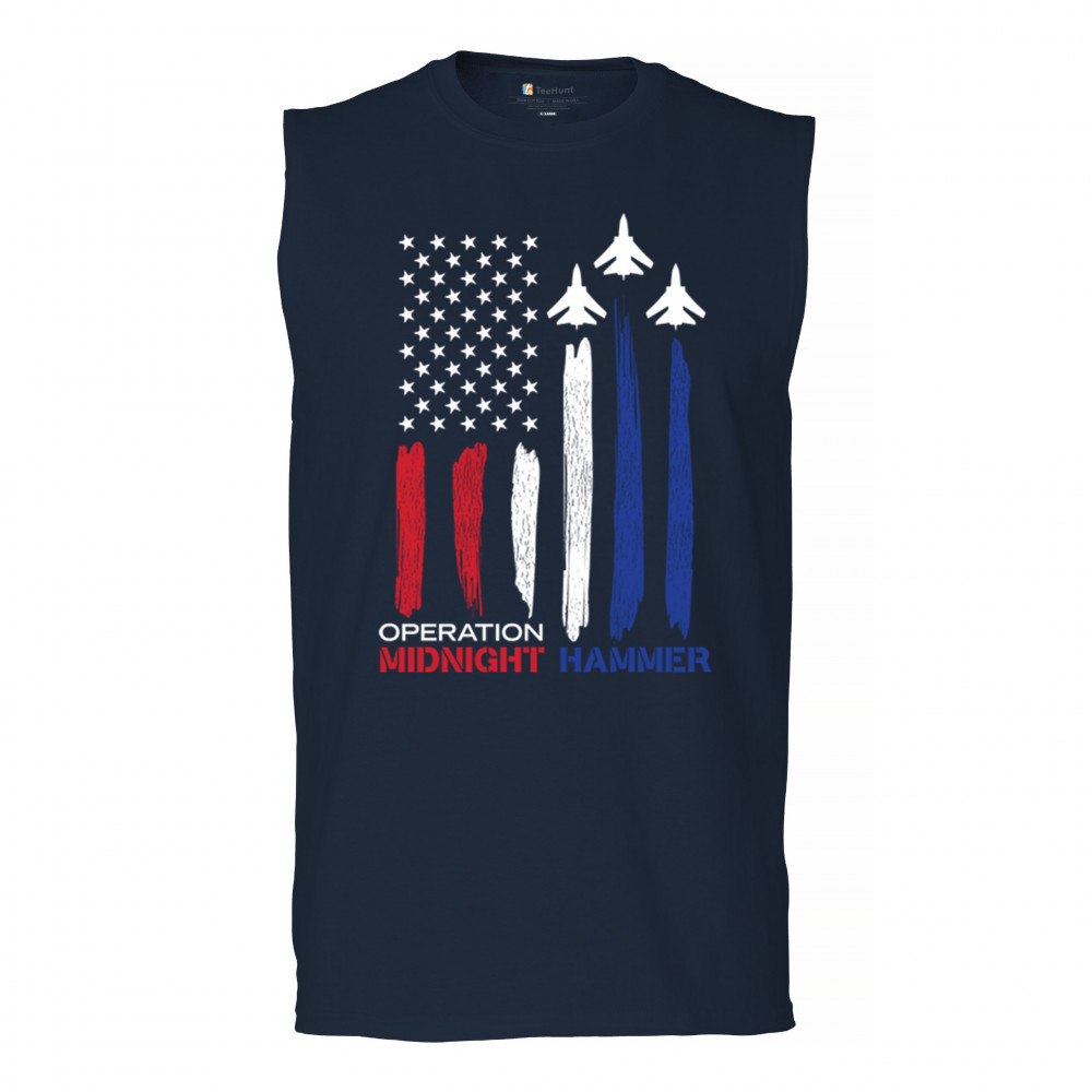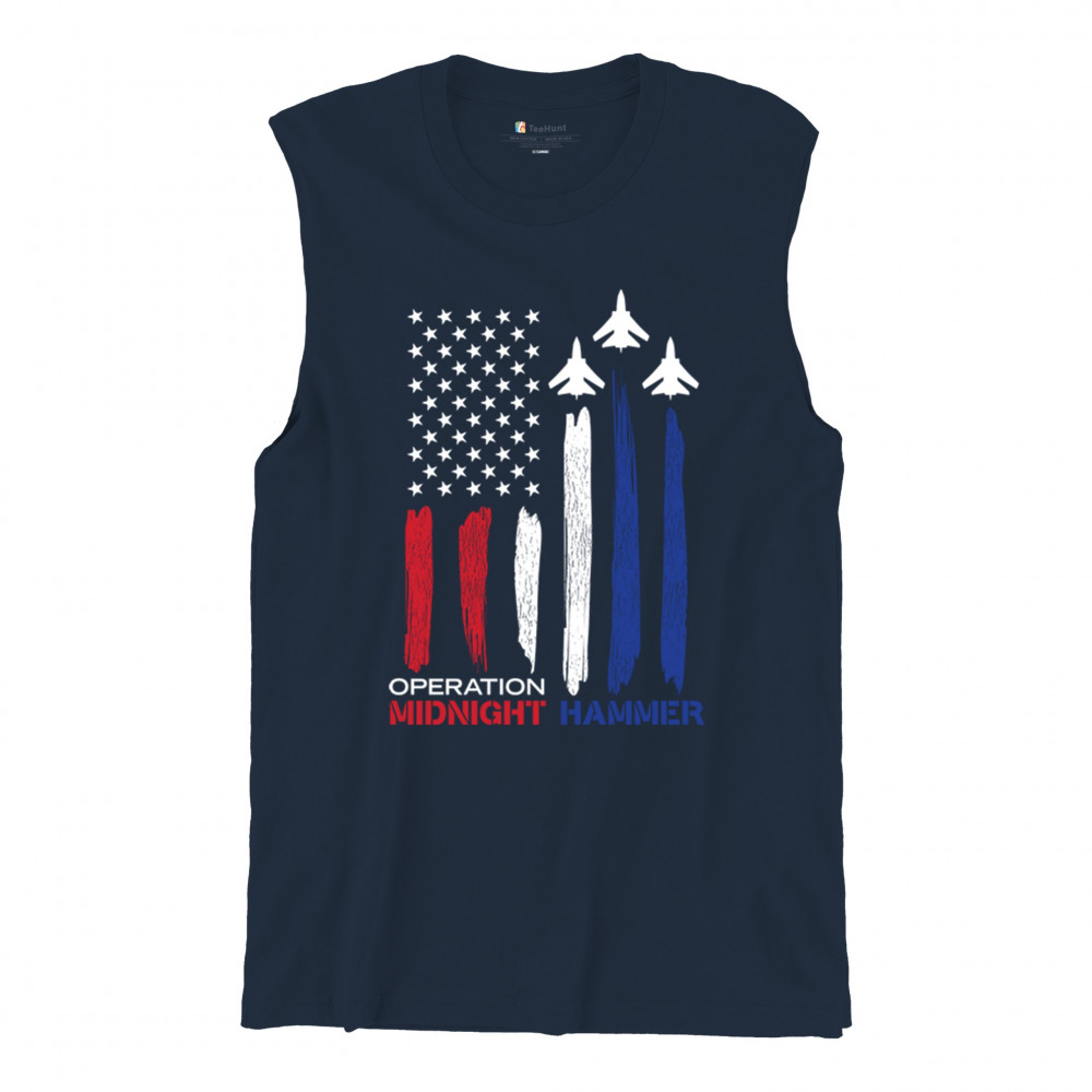 Operation Midnight Hammer design with jets and patriotic flag. Perfect for military pride, conservatives, and true America First supporters.