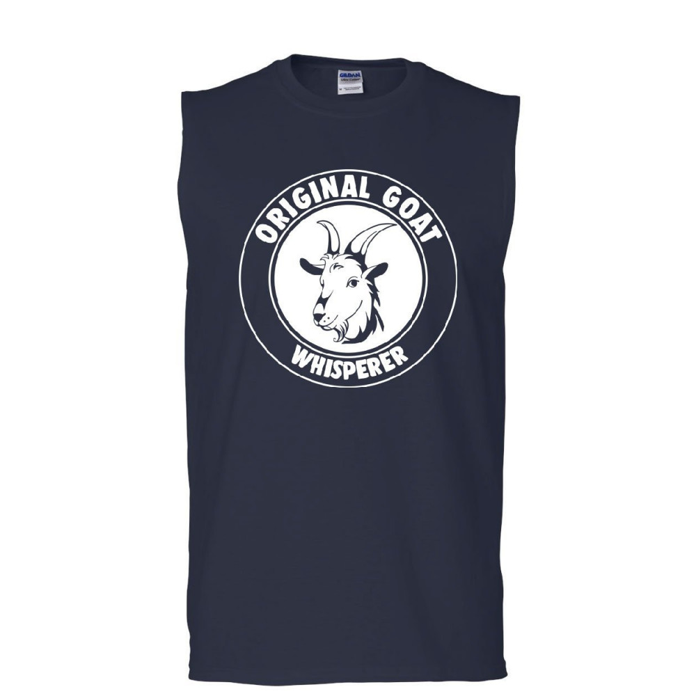 ORIGINAL GOAT WHISPERER muscle shirt funny animal farm cowboy country sleeveless navy blue