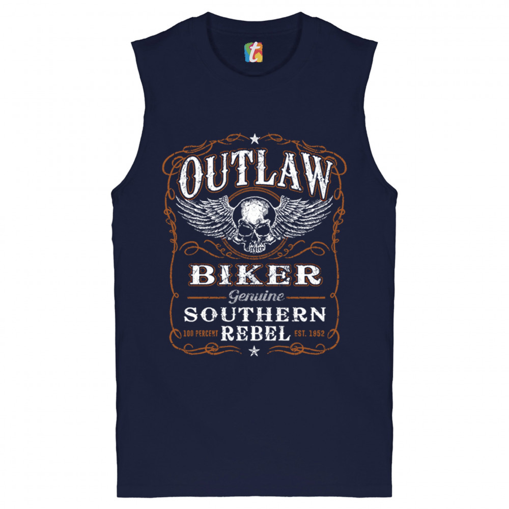 OUTLAW BIKER muscle shirt genuine southern rebel winged skull face men's navy blue