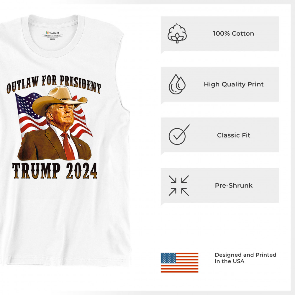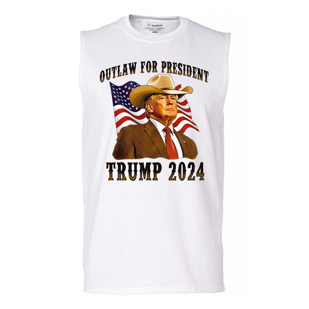 Bold "Outlaw for President" Trump 2024 design for conservative supporters, featuring Donald J. Trump and the American flag. Show your patriotism.