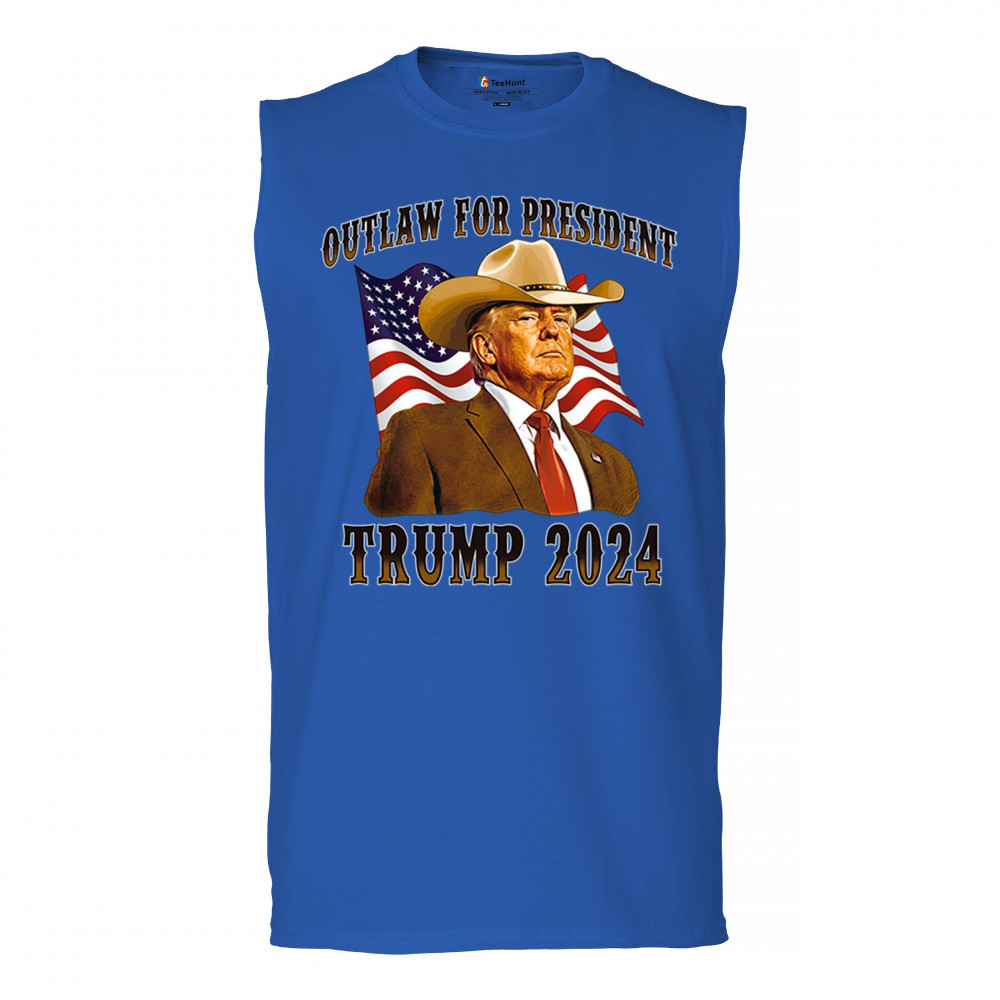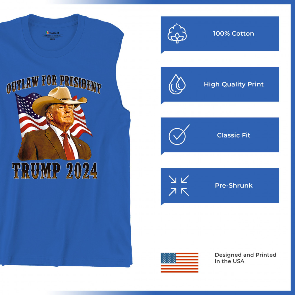 Bold "Outlaw for President" Trump 2024 design for conservative supporters, featuring Donald J. Trump and the American flag. Show your patriotism.