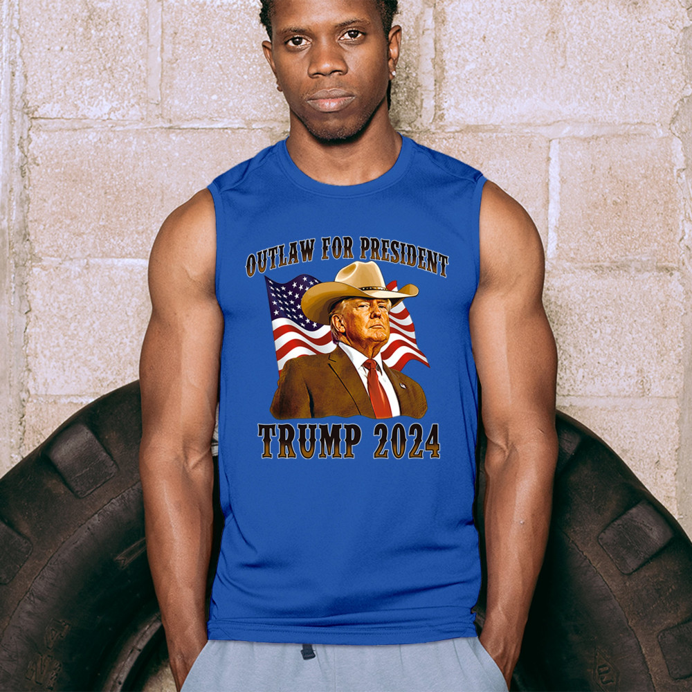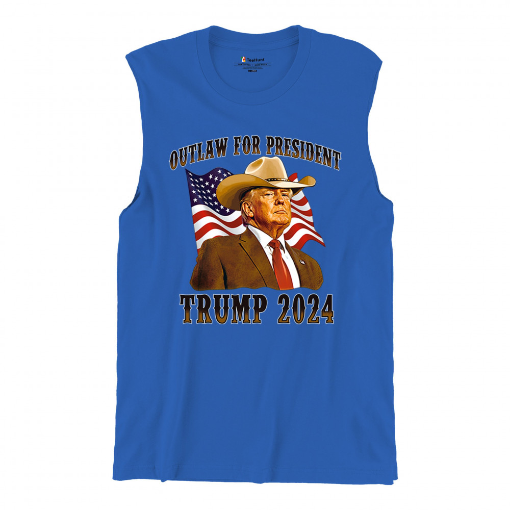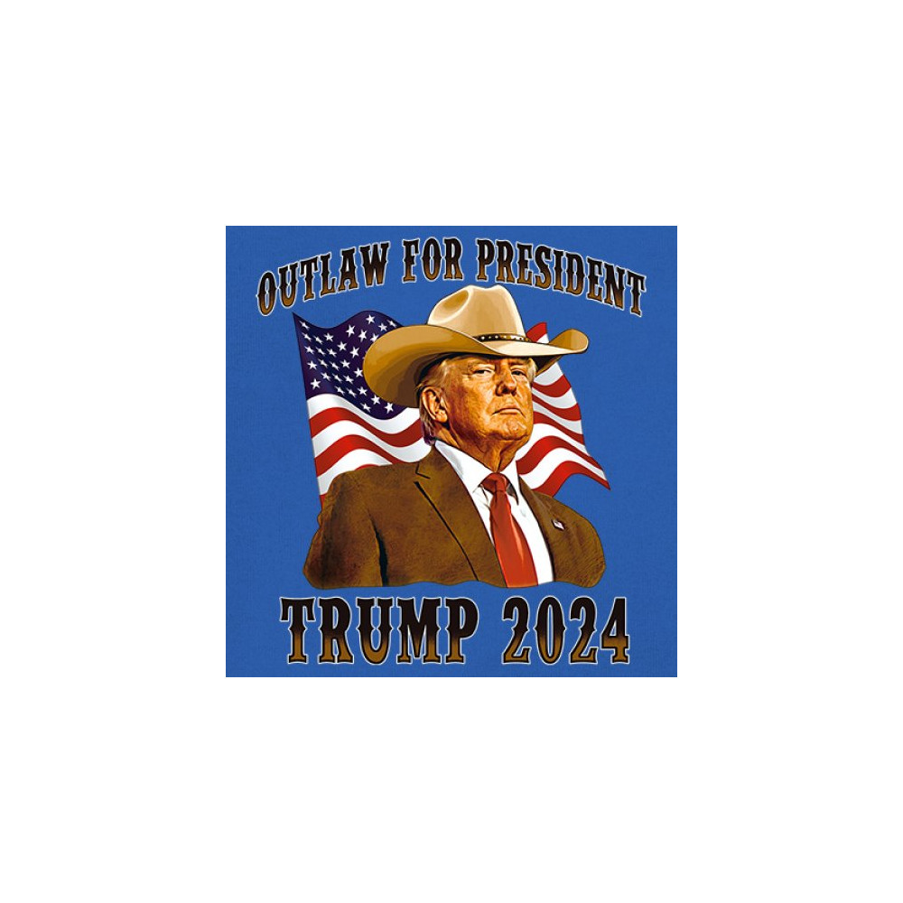The "Outlaw for President" Trump 2024 design is a powerful symbol of American resilience and conservative pride. Featuring Donald J. Trump in a cowboy hat with the American flag waving behind, this design speaks to supporters who believe in the America First movement, conservative values, and a rebel spirit. Ideal for rallies, patriotic events, and anyone looking to make a bold statement for the 47th President of the United States.