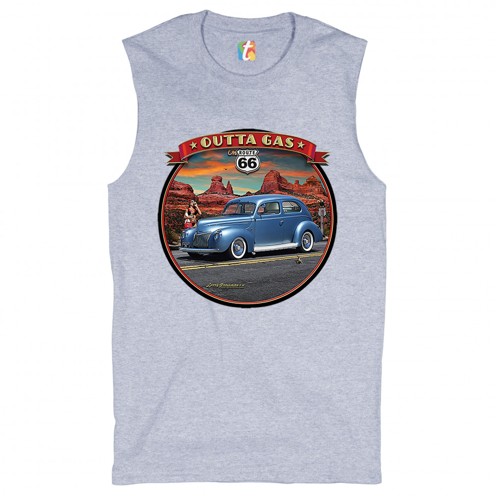 OUTTA GAS ON ROUTE 66 muscle shirt the mother road retro vintage men's gray