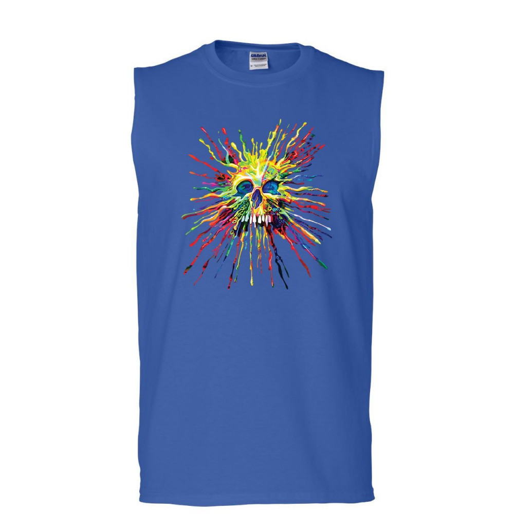 PAINT SPLATTER SKULL muscle shirt multicolor art crazy melting drip sleeveless blue