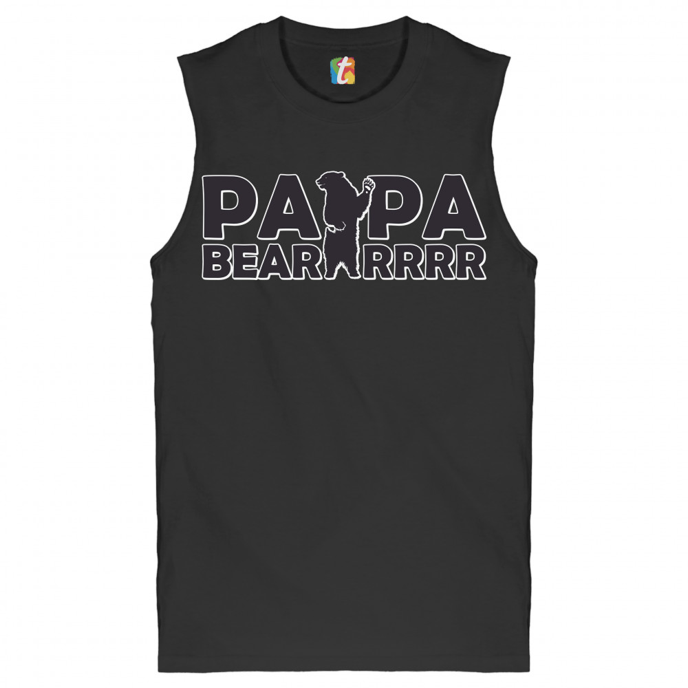 PAPA BEAR muscle shirt father's day gift funny protective dad daddy men's black