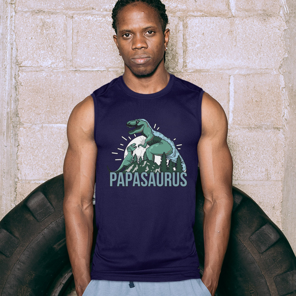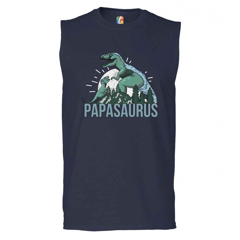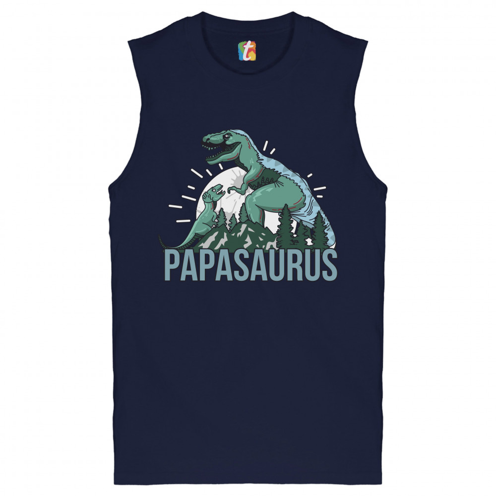 PAPASAURUS muscle shirt father's day t-rex dinosaur grandpa funny daddy men's navy blue