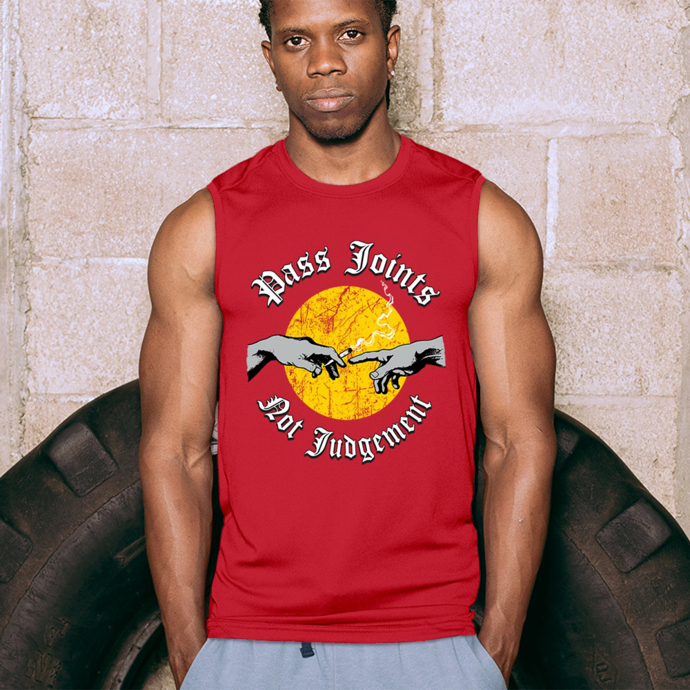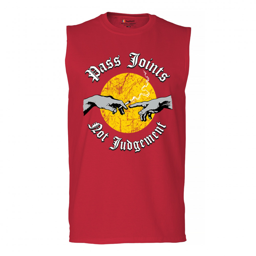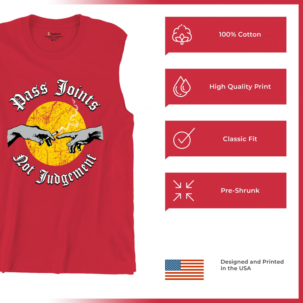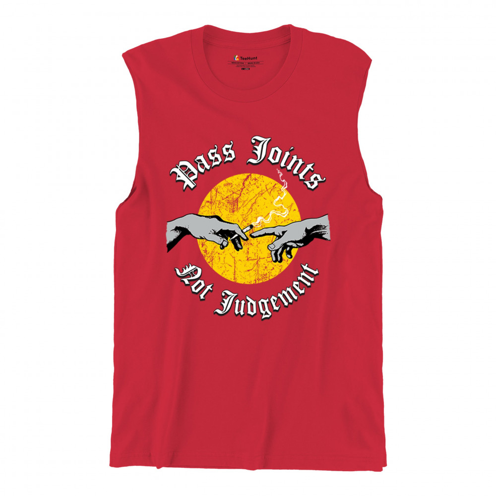 Cannabis culture twist on classic art. Hands passing a joint with “Pass Joints Not Judgement†message. Chill, bold, and unapologetically stoner.