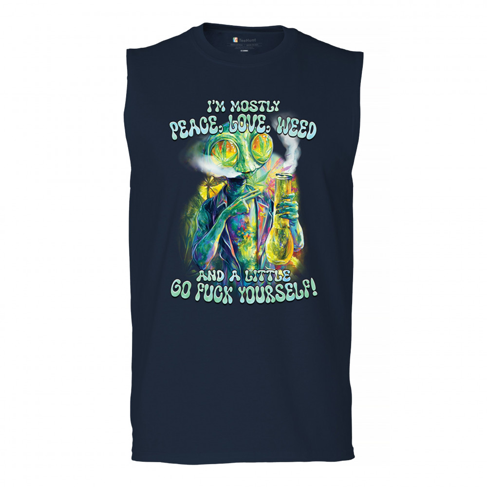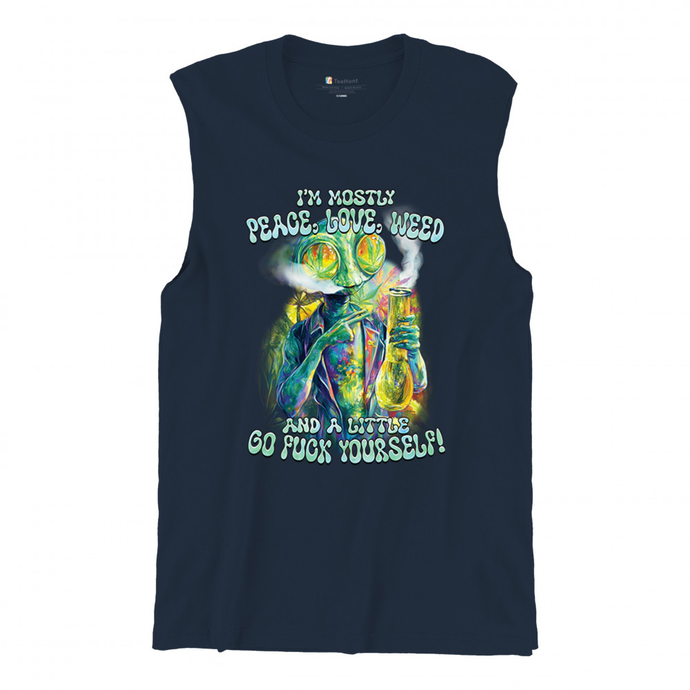 Bold alien cannabis design mixing humor, sarcasm, and weed culture—perfect for unapologetic smokers with attitude and peace vibes.