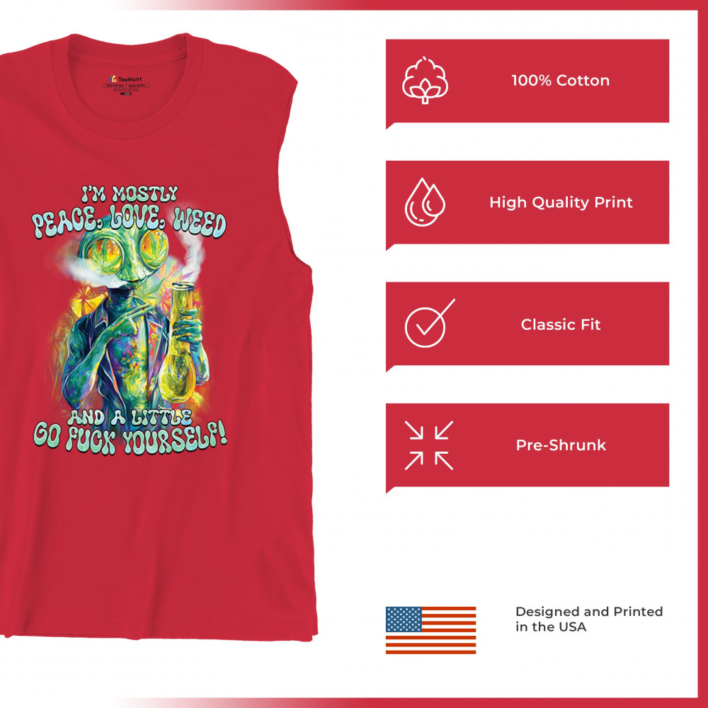 Bold alien cannabis design mixing humor, sarcasm, and weed culture—perfect for unapologetic smokers with attitude and peace vibes.