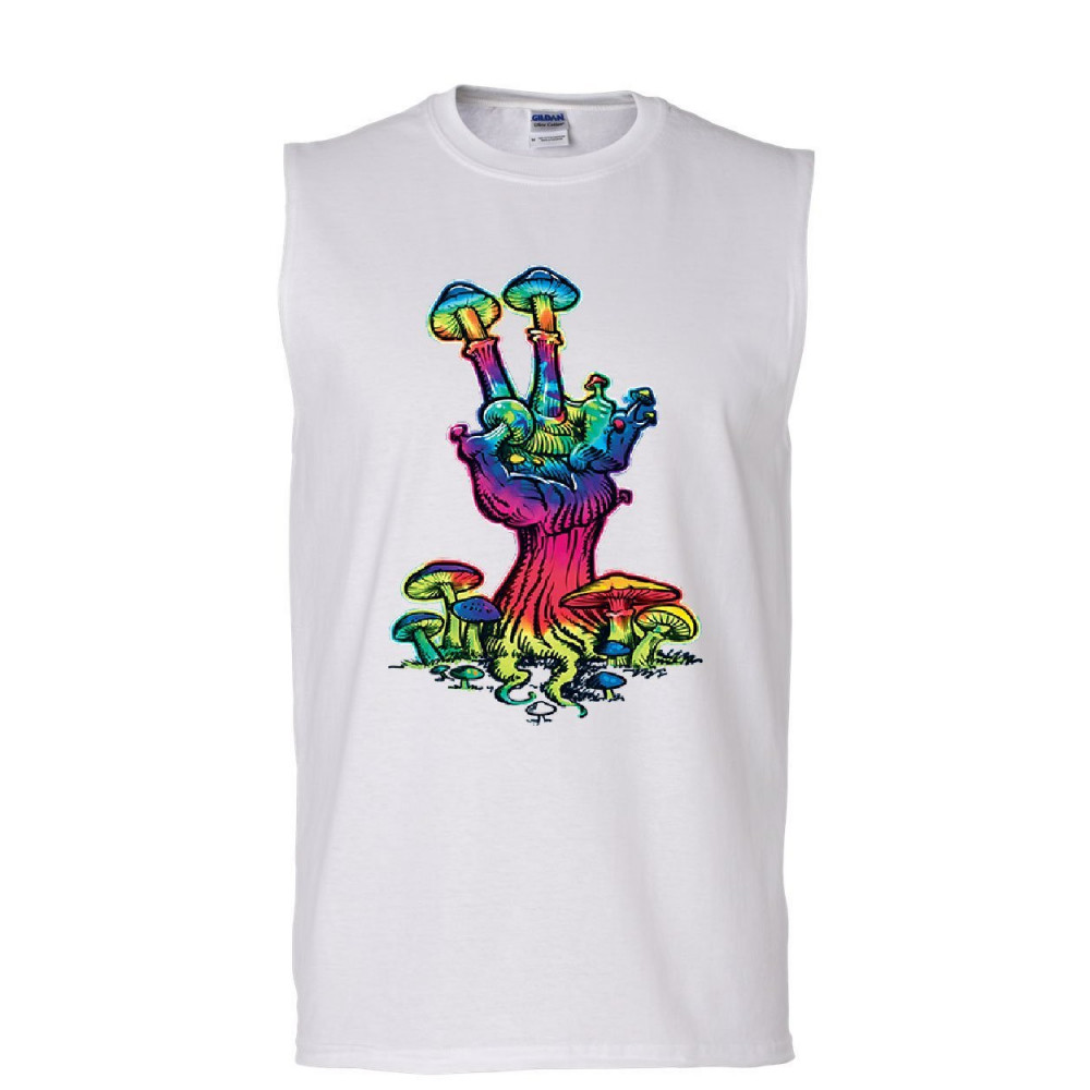 MUSHROOM PEACE peace mushroom muscle shirt shroom hippie fungi colorful neon love sleeveless white