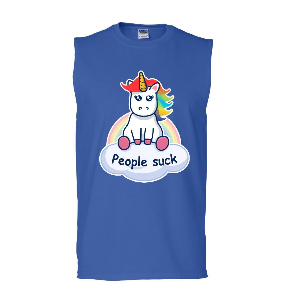 PEOPLE SUCK cute unicorn muscle shirt funny rainbow pony introvert sleeveless blue