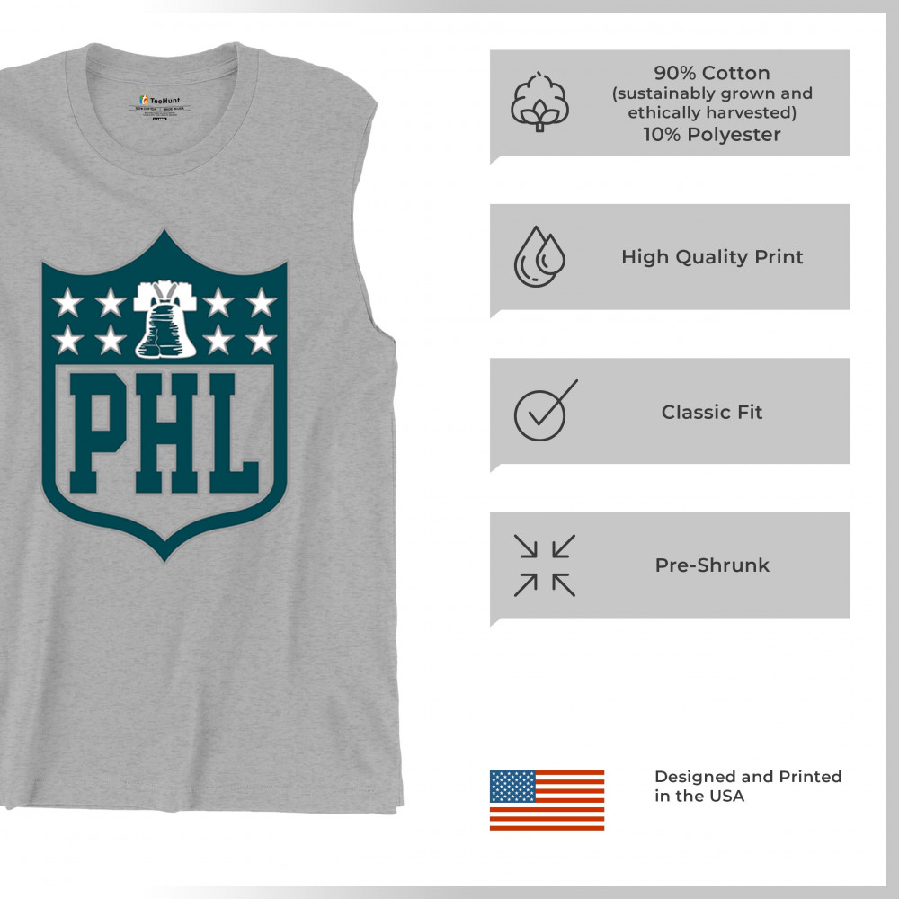 Bold PHL shield with liberty bell, perfect for Sunday football, big game energy, and Philadelphia pride for true fans.