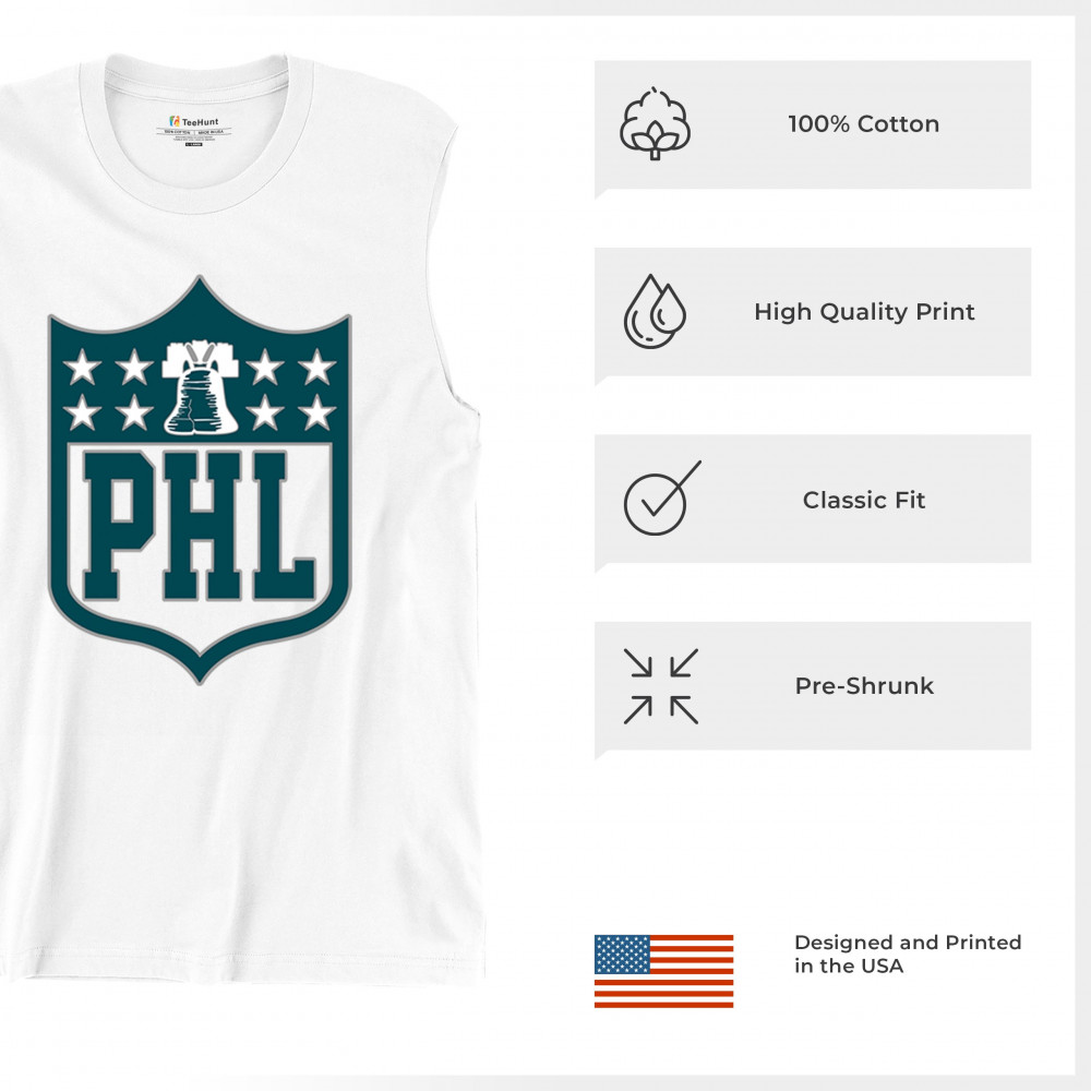 Bold PHL shield with liberty bell, perfect for Sunday football, big game energy, and Philadelphia pride for true fans.